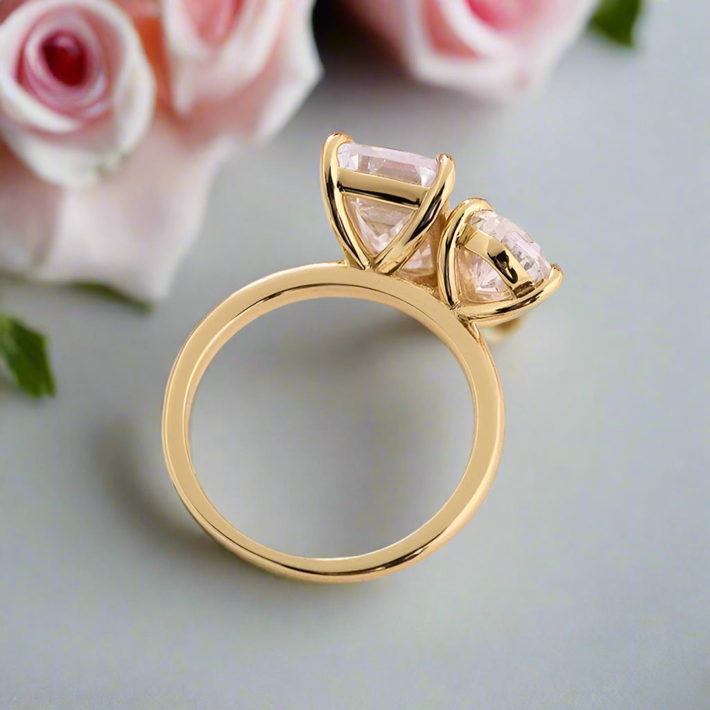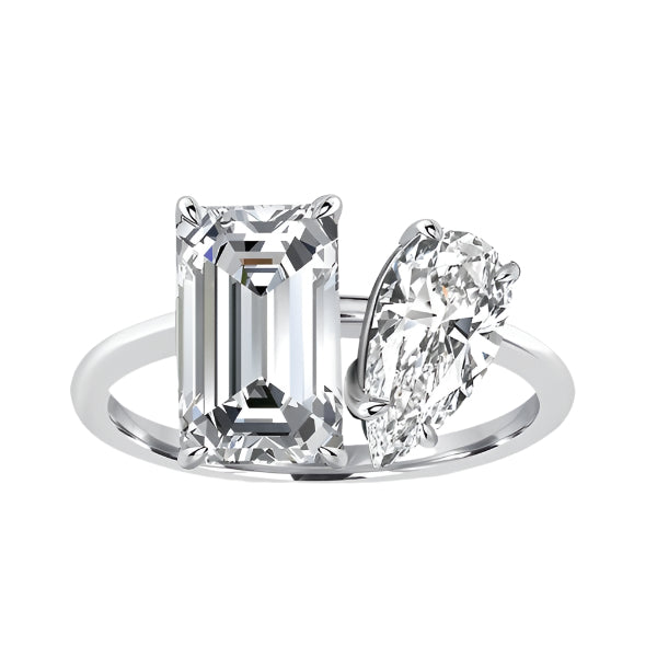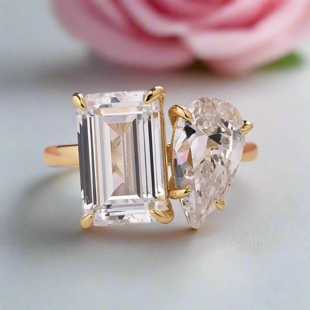 Unique Emerald Cut & Pear Cut Double Stone Engagement Ring