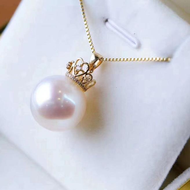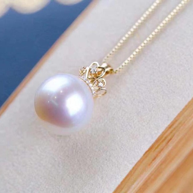 18k Crown Style Freshwater Pearl Necklace With Diamond