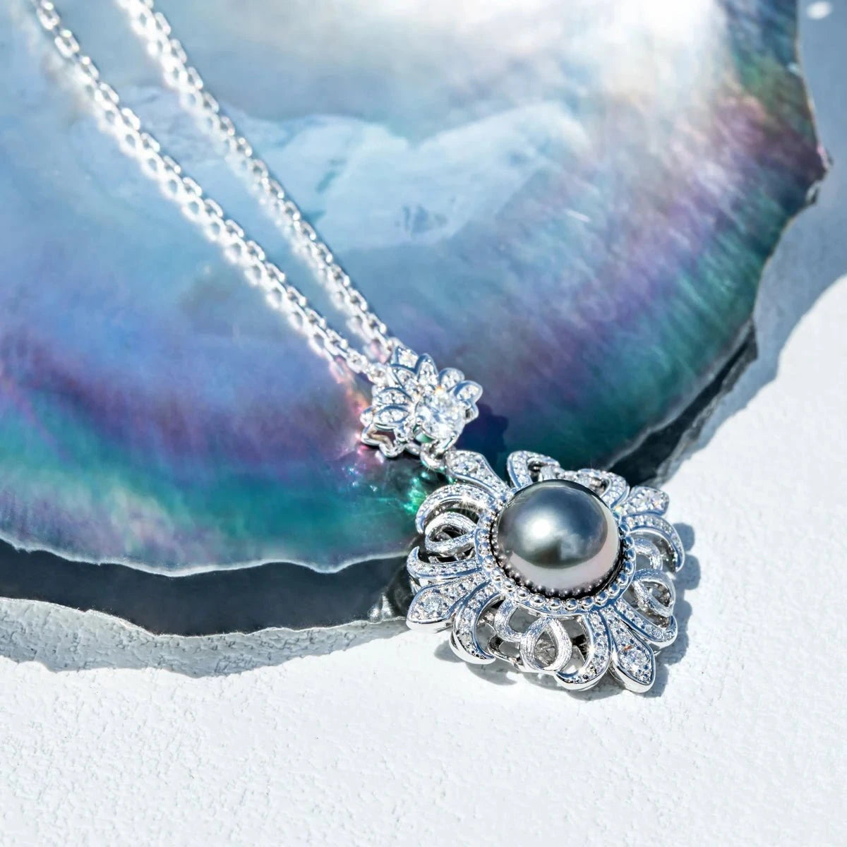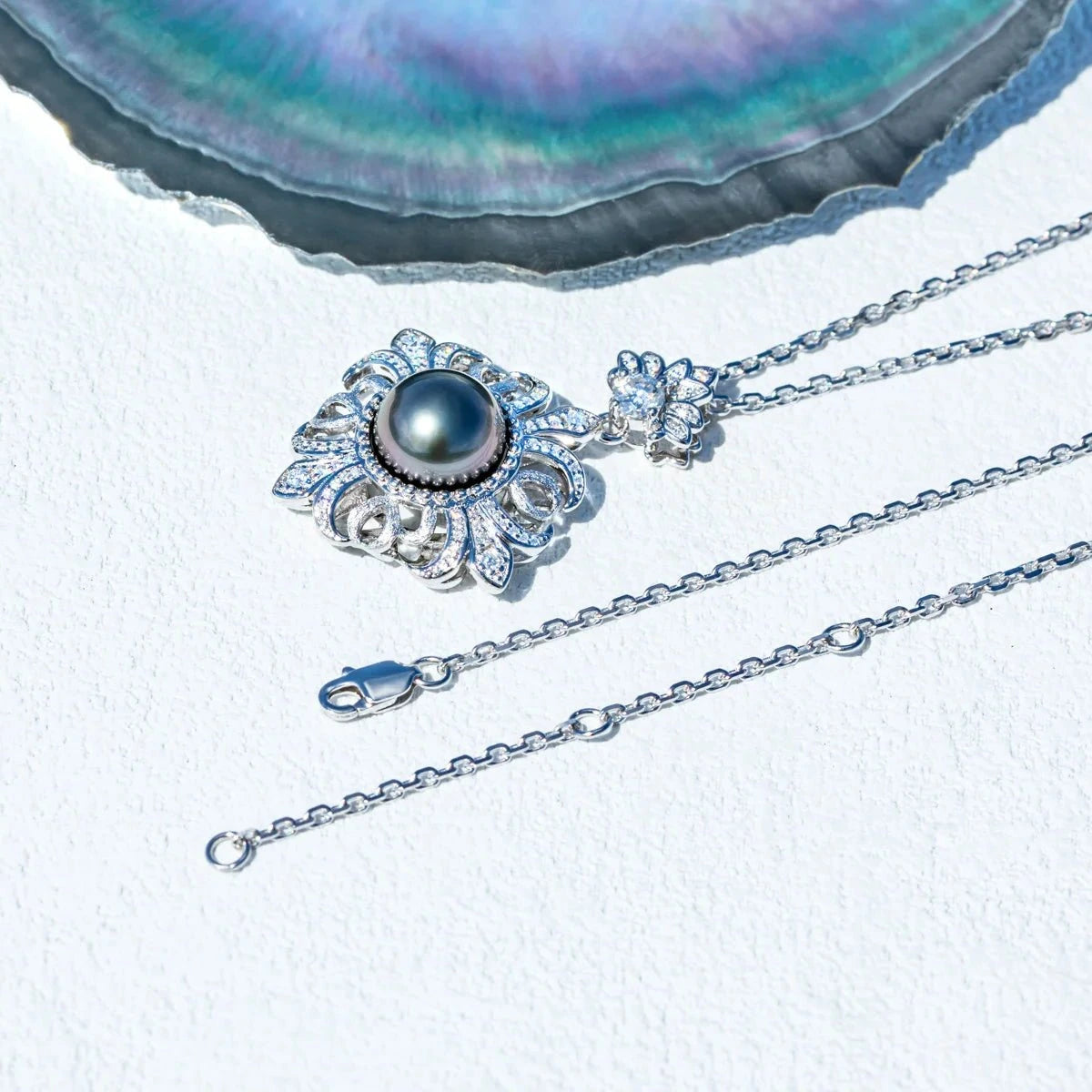 Introducing our stunning Black Tahitian Seawater Pearl Necklace with Certified Moissanite by Black Diamonds New York! This high-quality necklace showcases the beauty of black pearl, complemented by the brilliance of round-cut moissanite. Made with care, the 925 silver dipped five times in 18k white gold adds a touch of elegance. Prepare to be mesmerized by this gorgeous piece that effortlessly combines affordability and style. Elevate any outfit with this must-have accessory!