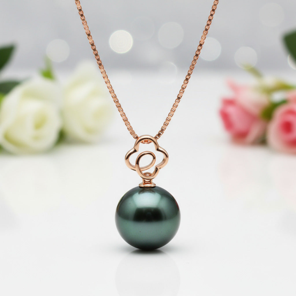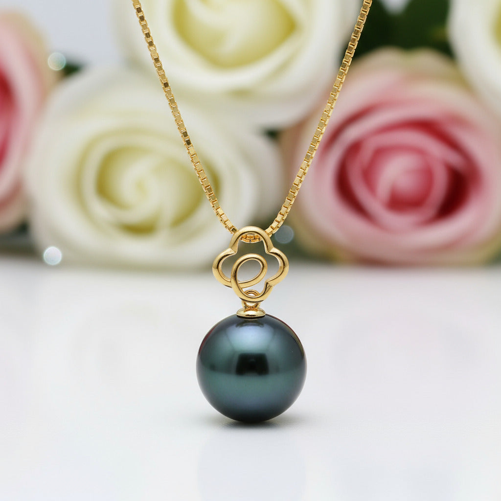 Hollow Flower Tahitian Pearl 18k Solid Gold Necklace