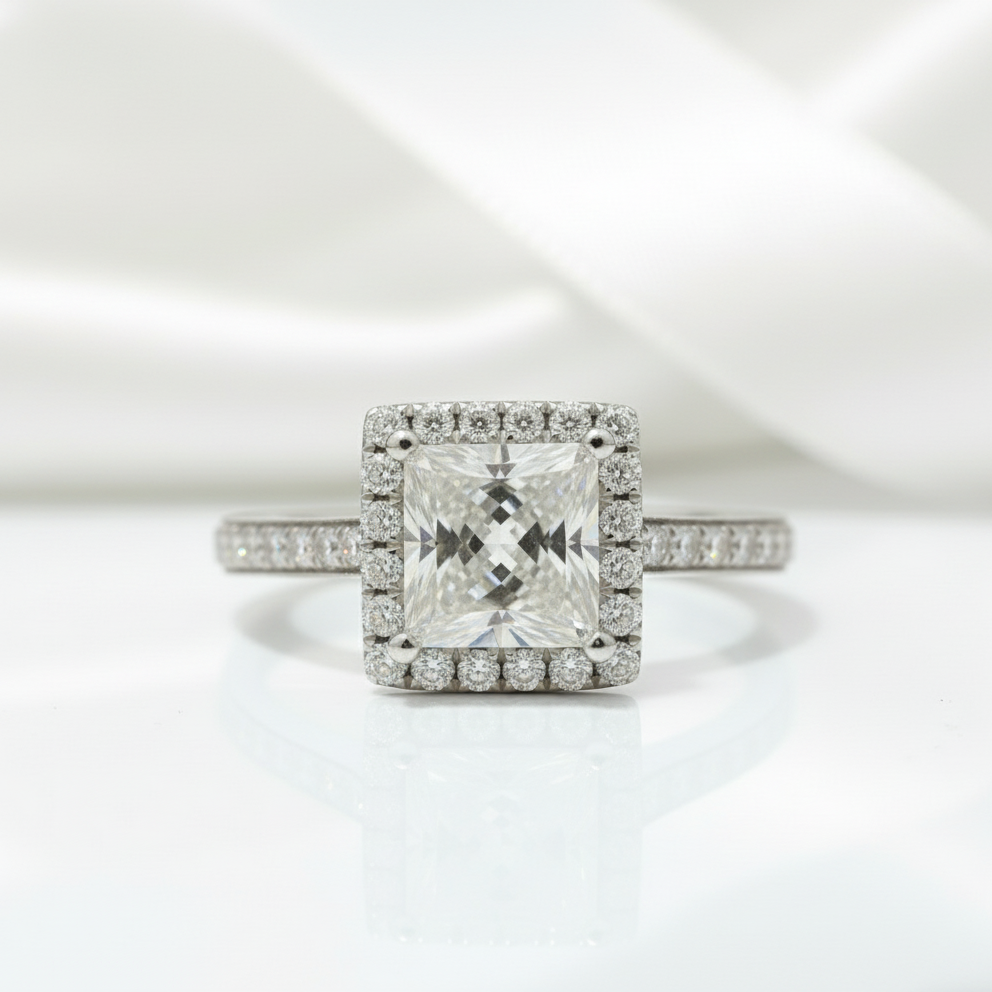 1 Carat Princess Cut Diamond 4 Claw Engagement Ring