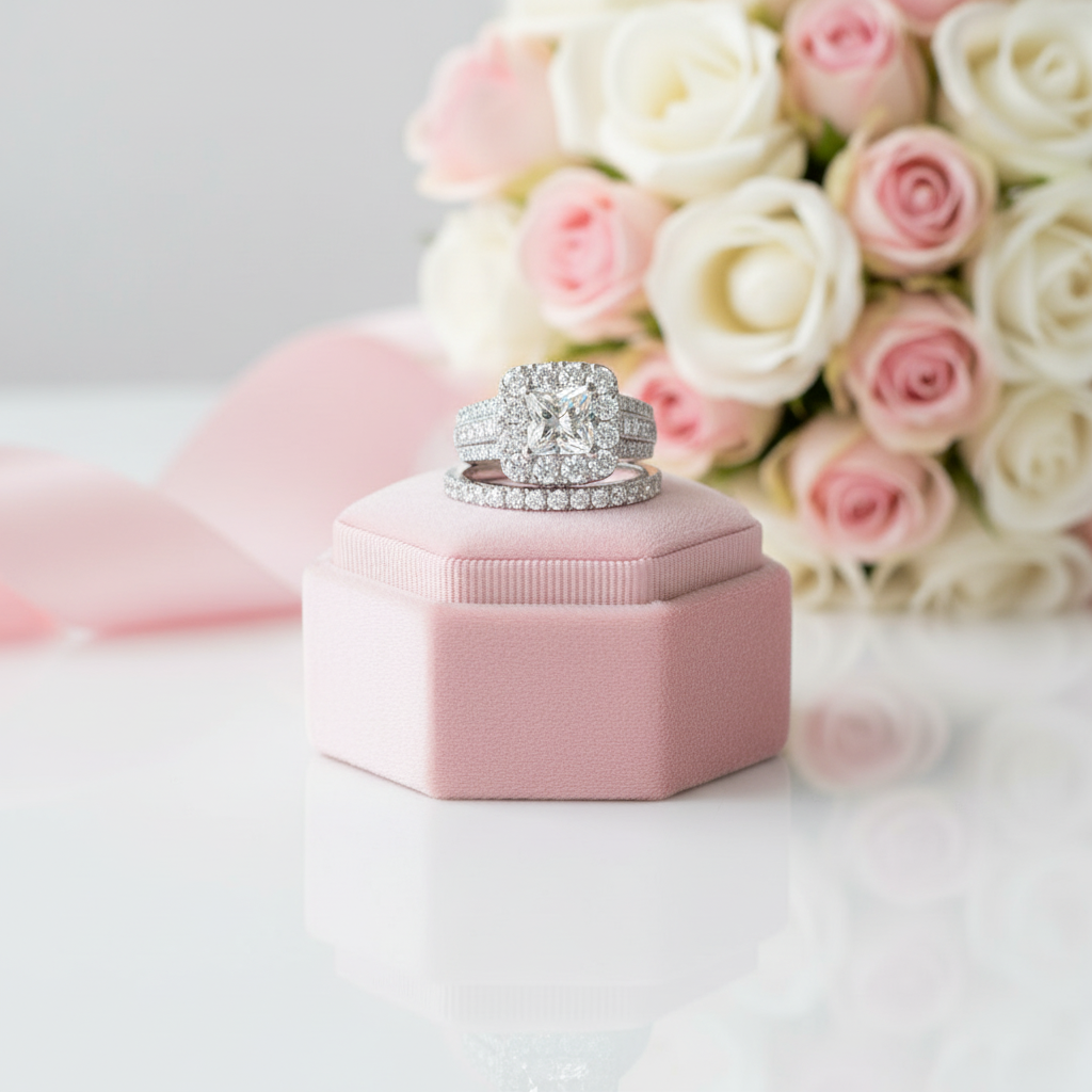 Luxurious Princess Cut Diamond Halo Engagement Set