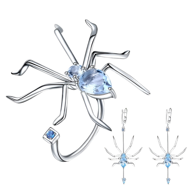 8.83Ct Natural Sky Blue Topaz Spider Gemstone Jewelry Set