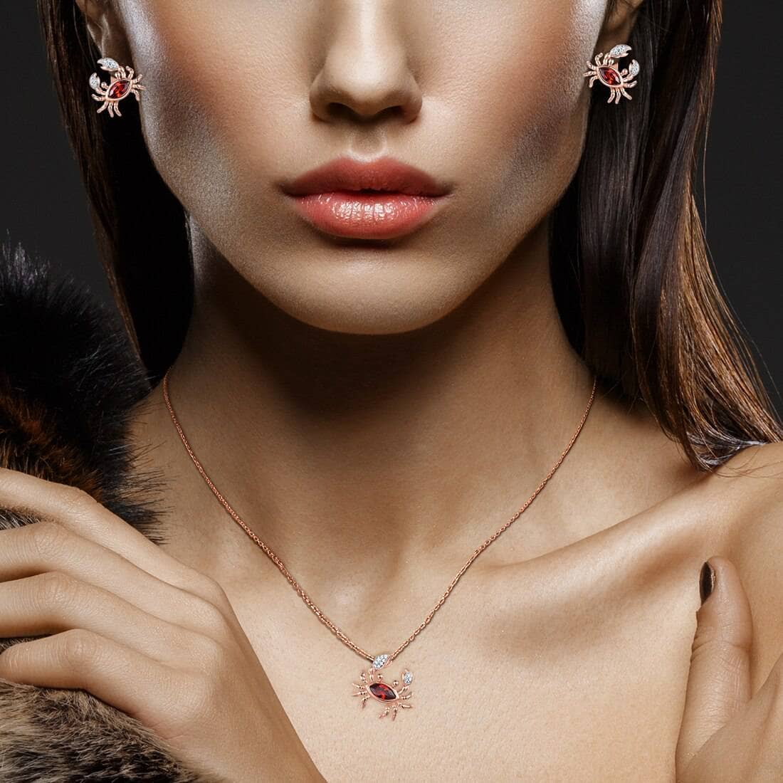 Crab Cancer Earrings with Diamond Jewelry Set