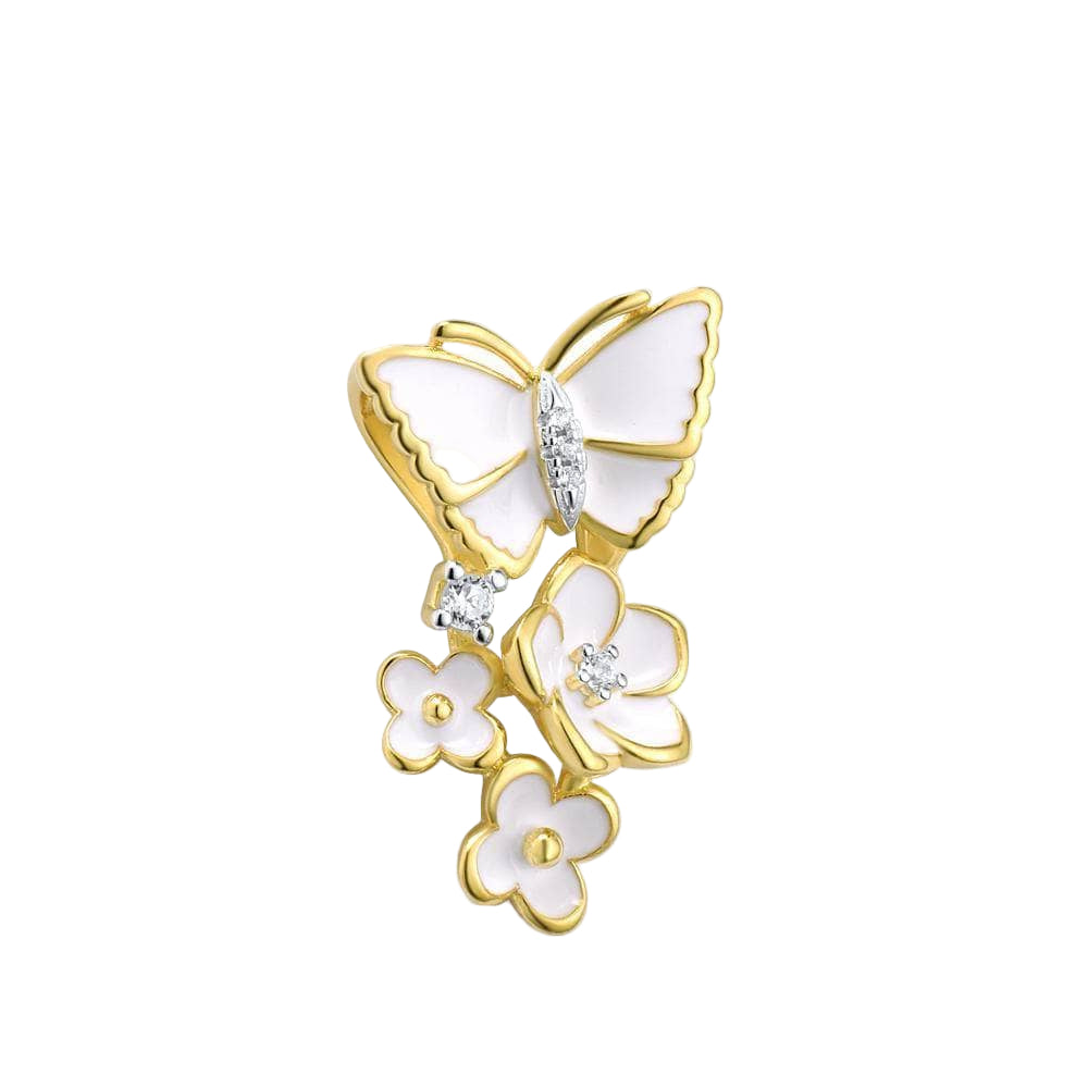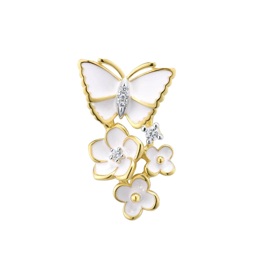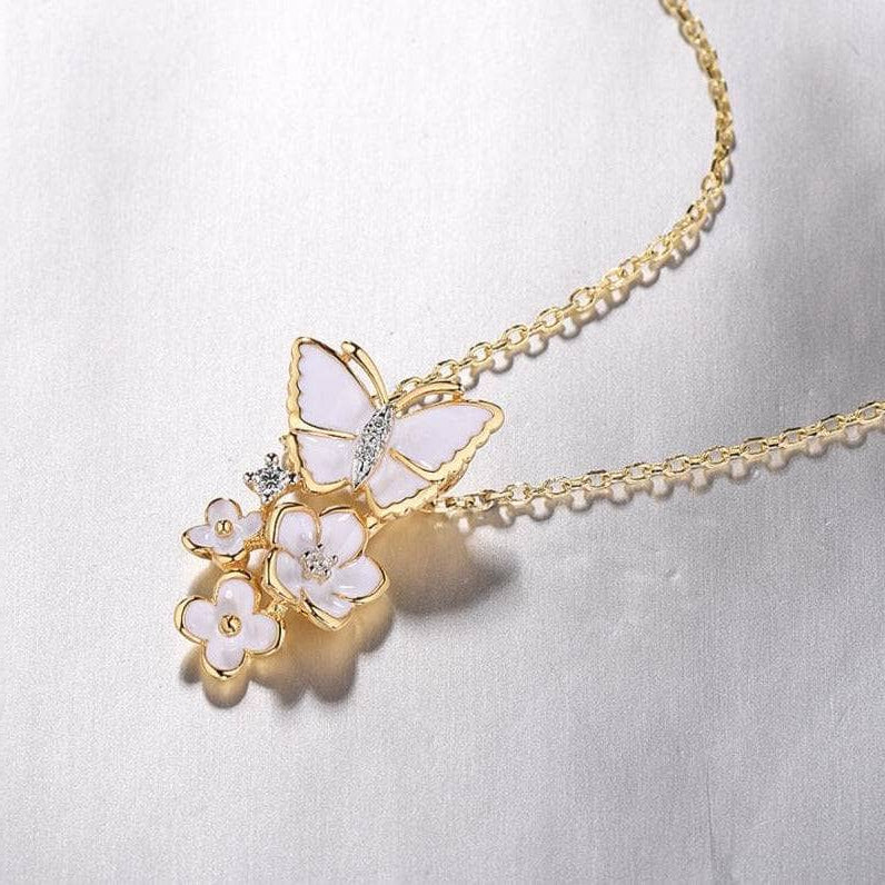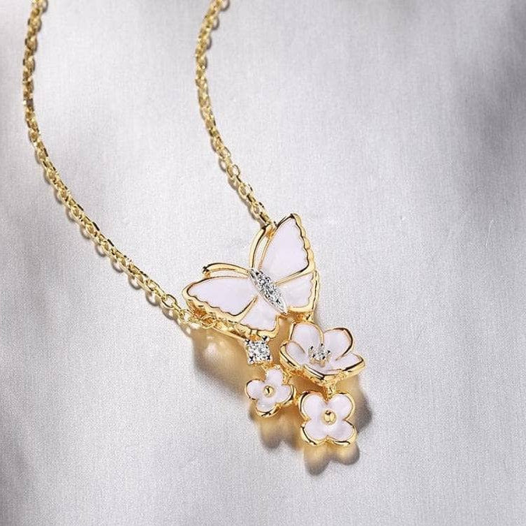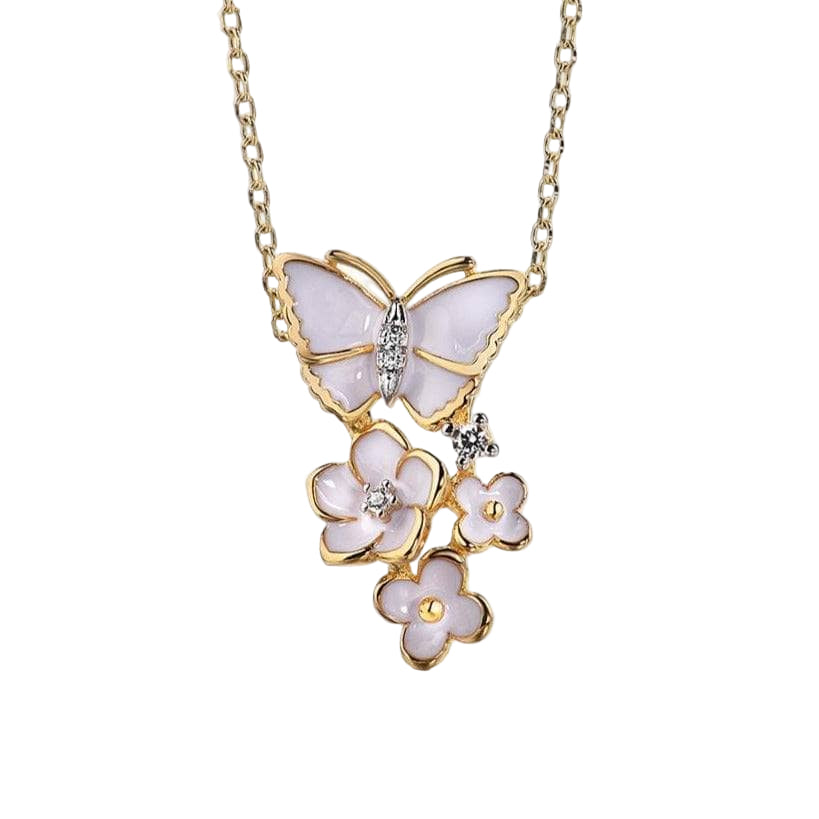 Elegant Enamel Orchid Flower & Butterfly Pendant