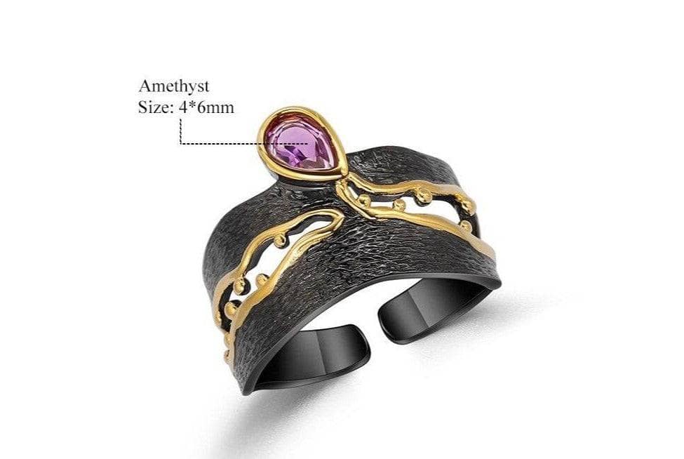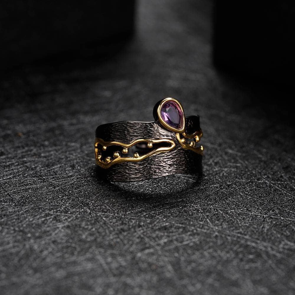 Golden Bead Honey Raindrop Natural Amethyst Ring