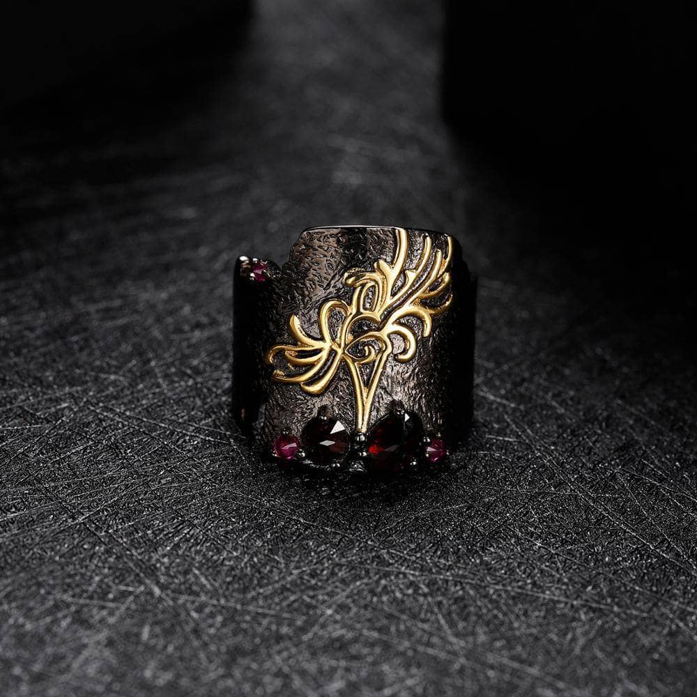 Natural Black Garnet Gemstones Bohemian Ring