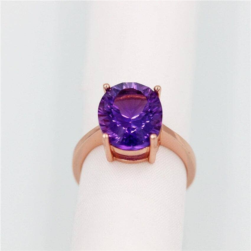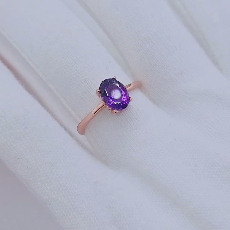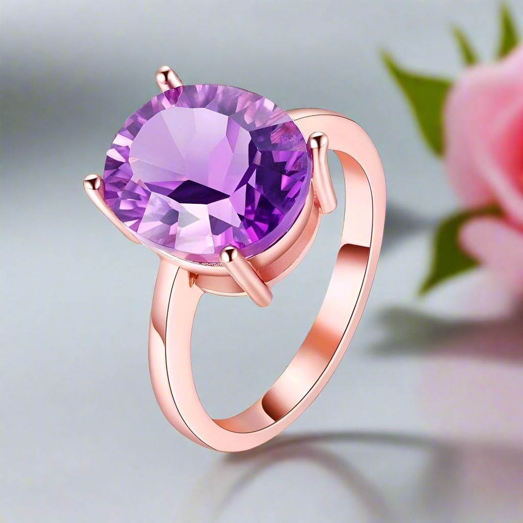 Purple Amethyst Diamond Ring in Rose Gold