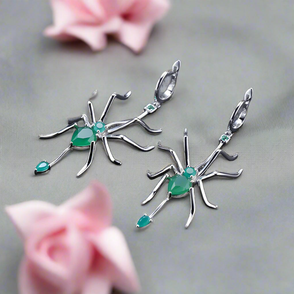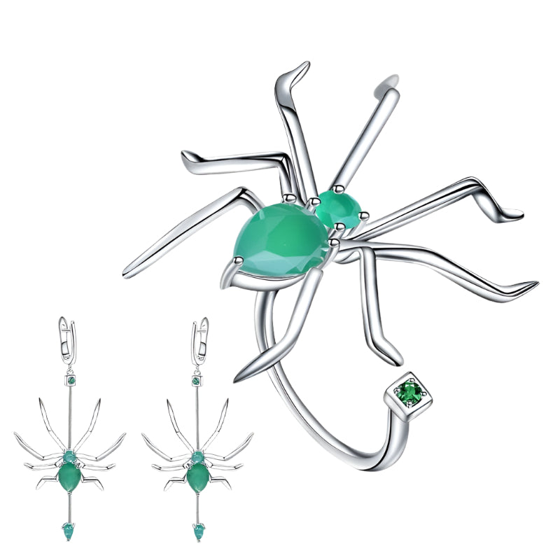 Spider Shape Natural Green Agate Gemstone Jewelry Set