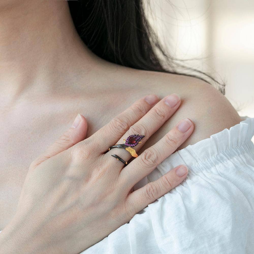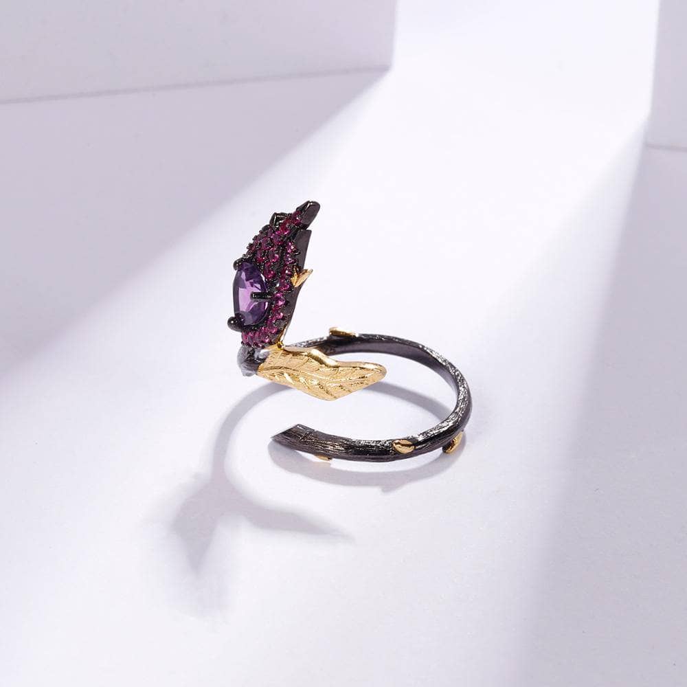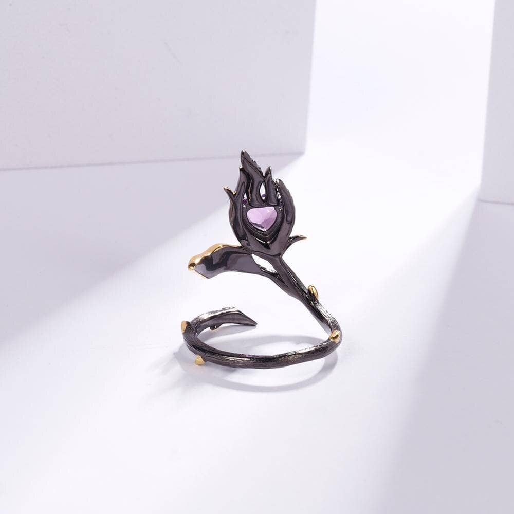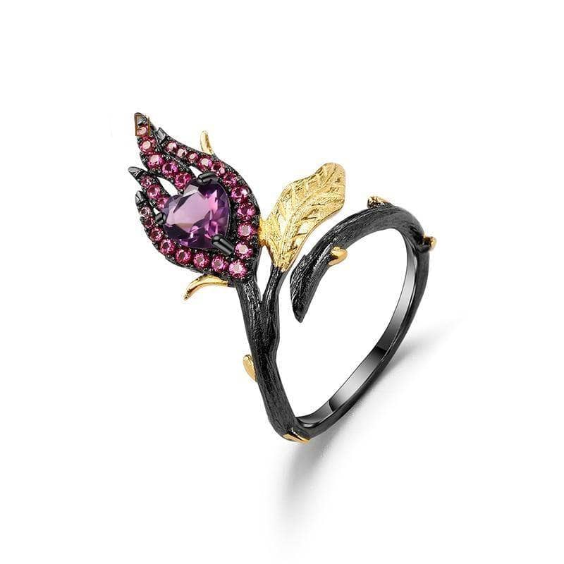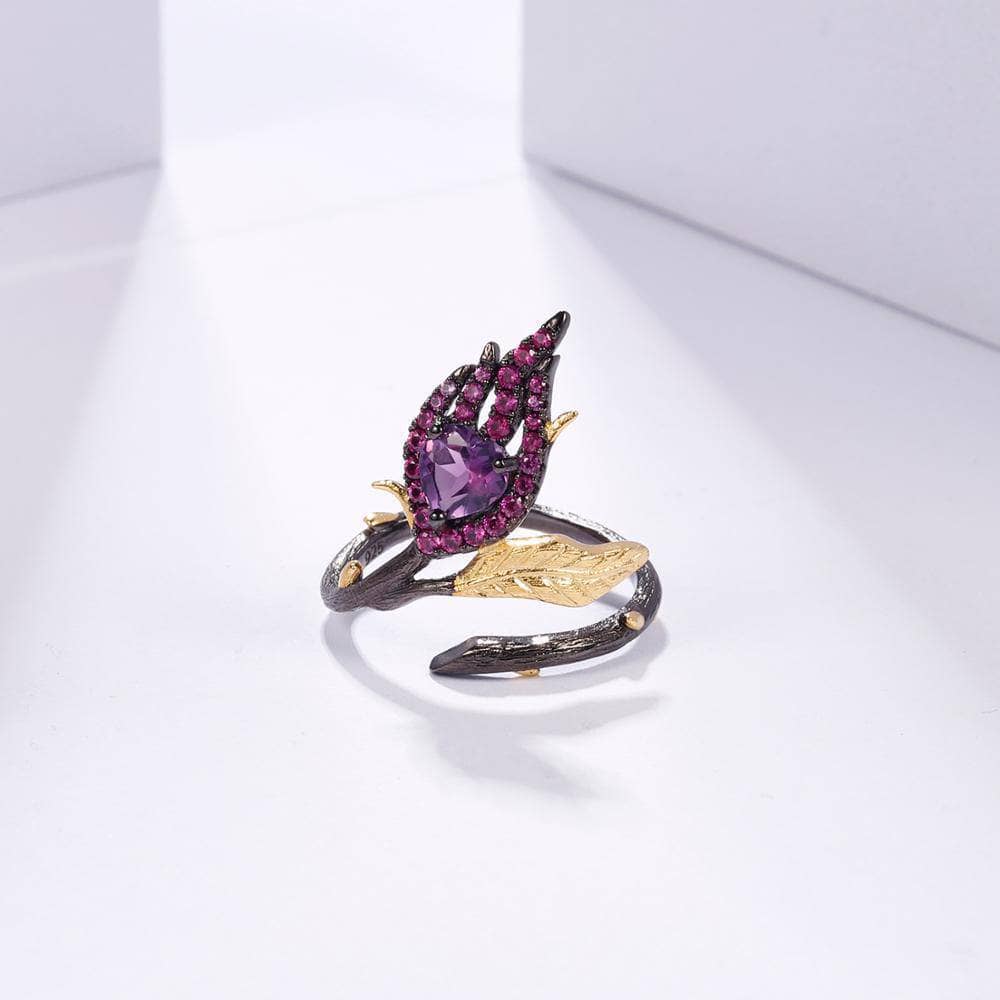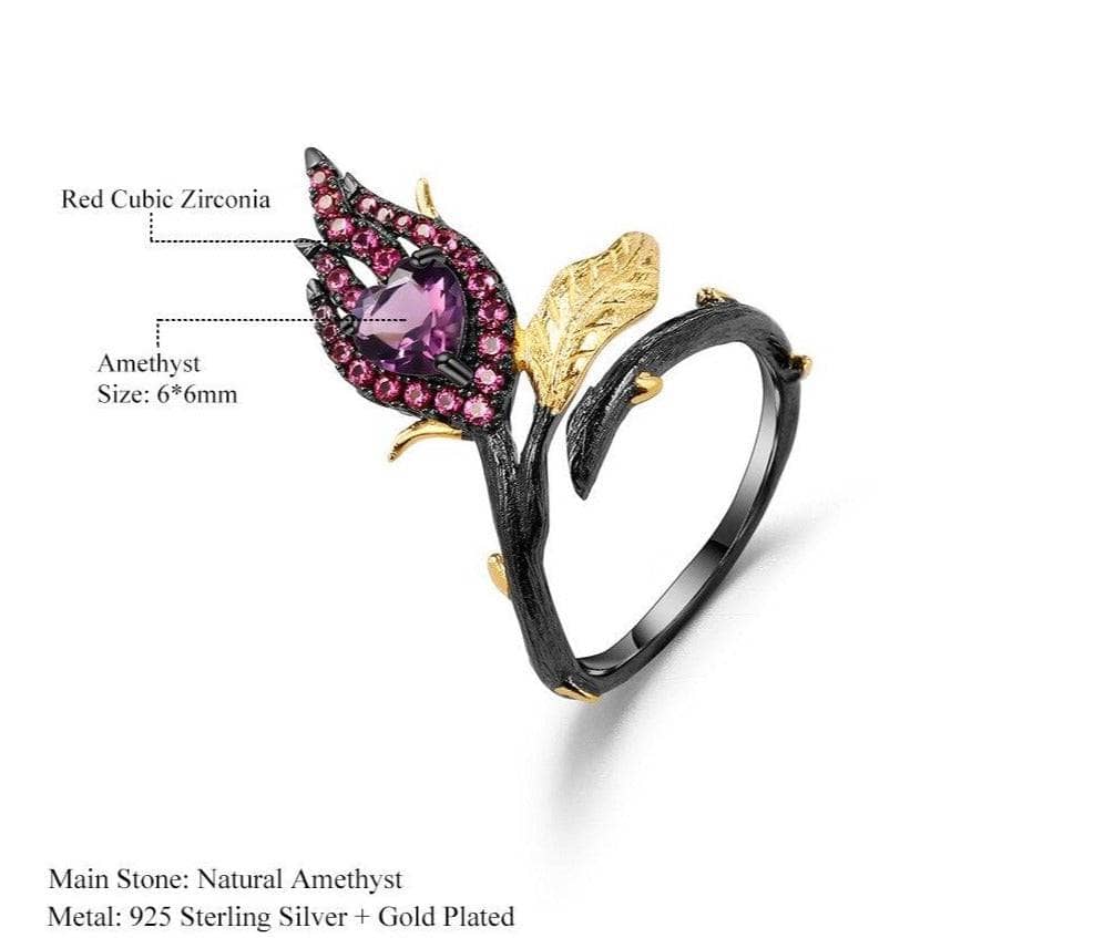 Two Tone Burning Heart Natural Amethyst Ring