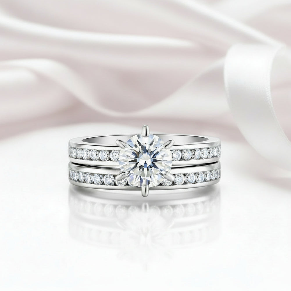 2.0 Ct Round Diamond 3Pcs Engagement Ring Set