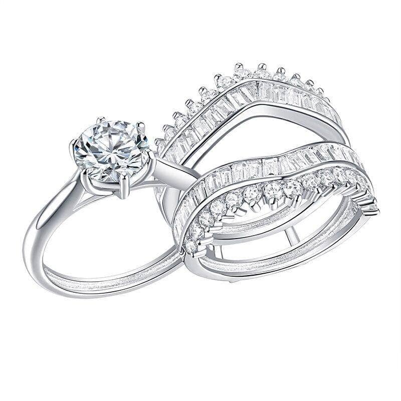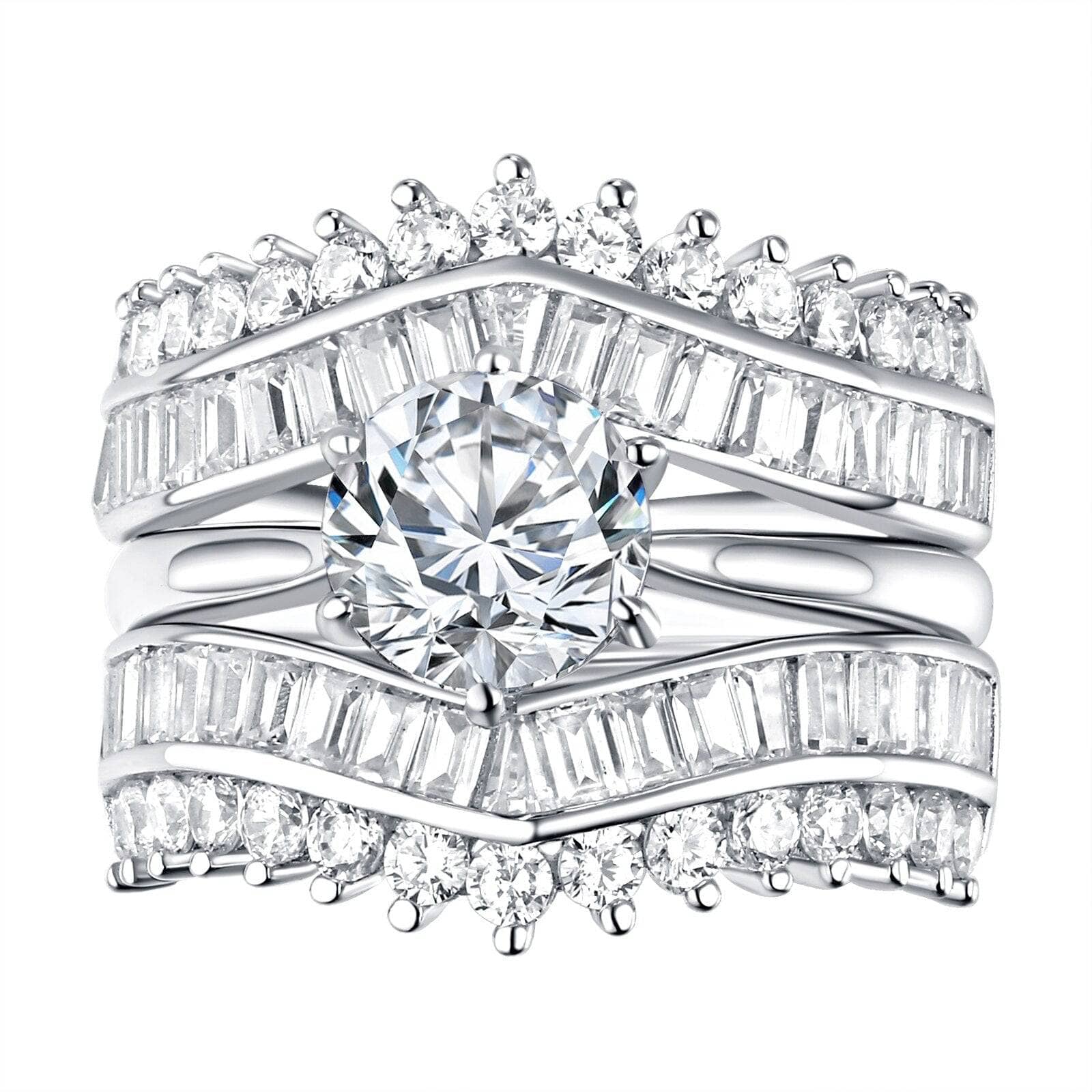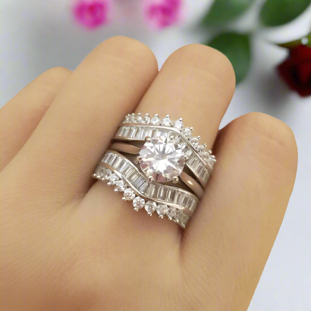 Round and Emerald Cut Diamond Engagement Insert Ring Set