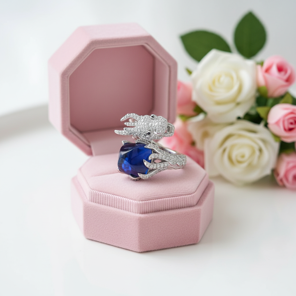 Stone Comparison: Falls between premium zirconium-based crystal and sapphire-grade simulants, with enhanced brilliance and clarity.