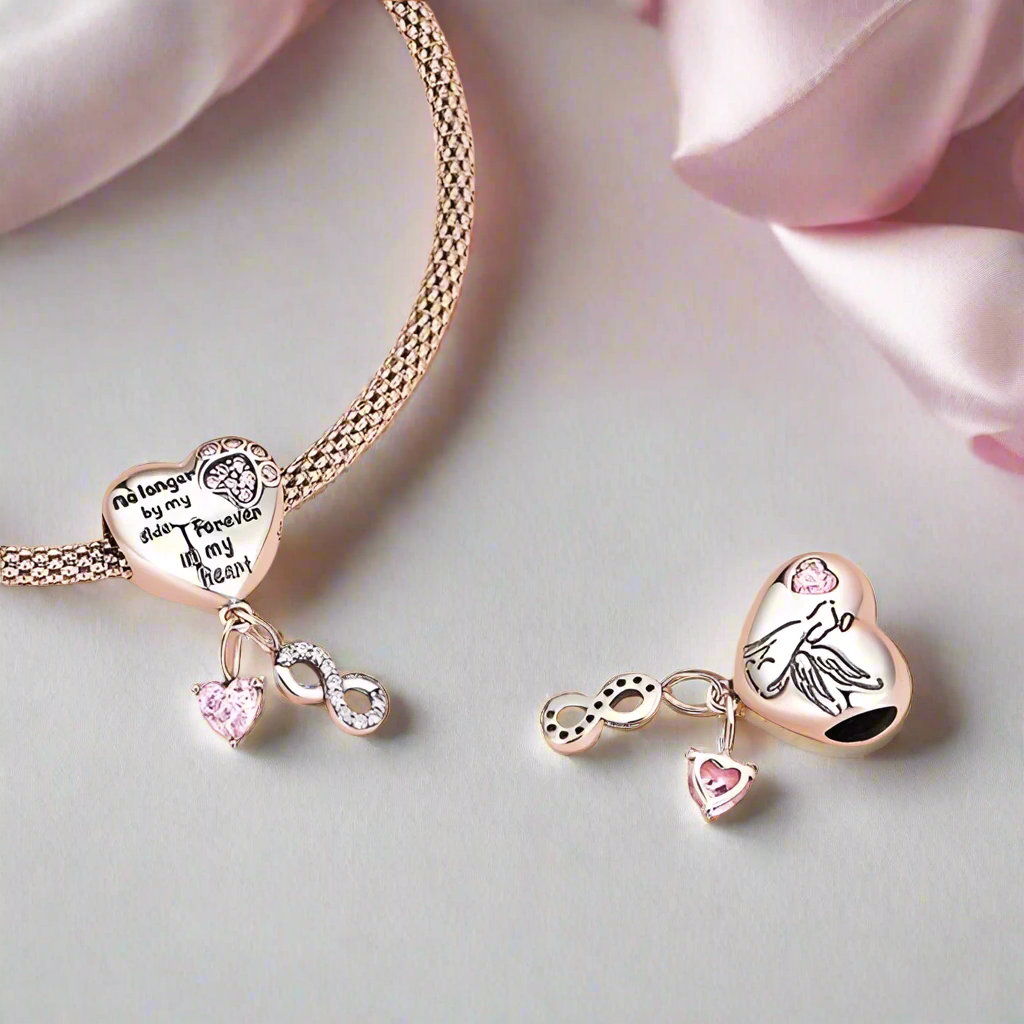 Reach beyond the boundaries of physical memory and explore a world of infinite love with the Infinite Love Heart & Paw Beads by Black Diamonds New York. Crafted from 92.5% pure silver and 7.5% high-quality and hypoallergenic metals, these products are both unique and affordable. From the story of a puppy who grew wings and flew to heaven, to the lettering, pink dog paw, infinite symbol, and heart-shaped stone that represent the connection felt between the owner and pet, this emotionally charged bead will help keep their spirit alive.