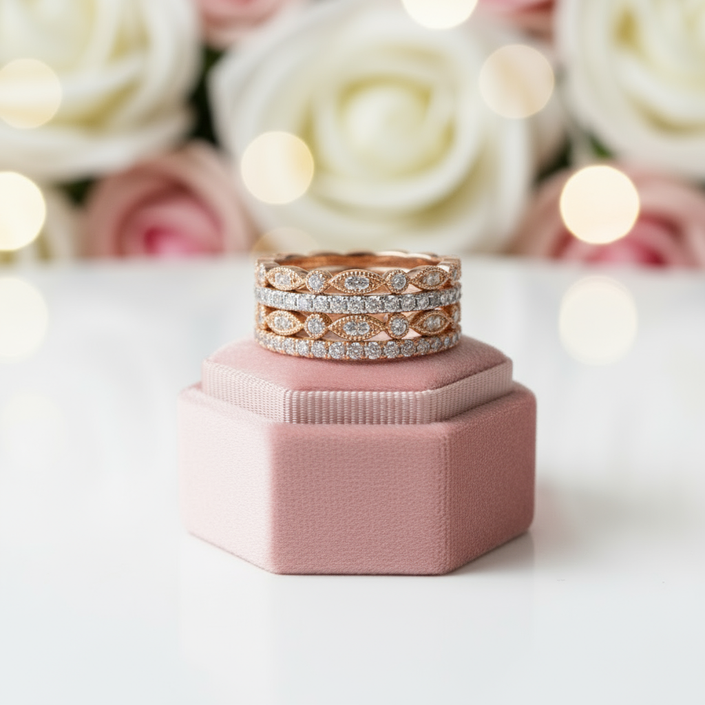 Eternity Three Tone 4PC Stackable Wedding Band Set