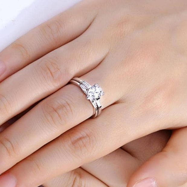 This luxurious ring set features 1.9 carat diamonds and is carefully crafted with 925 sterling silver for a timeless shine. Handmade with care and completely free of lead and nickel, this set is a must-have for any elegant jewelry collection. As the saying goes, "Shine bright like a diamond" with this exquisite set.