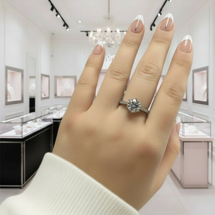 Stone Comparison: Sits brilliantly between Certified Moissanite and CVD Lab-grown Diamonds.