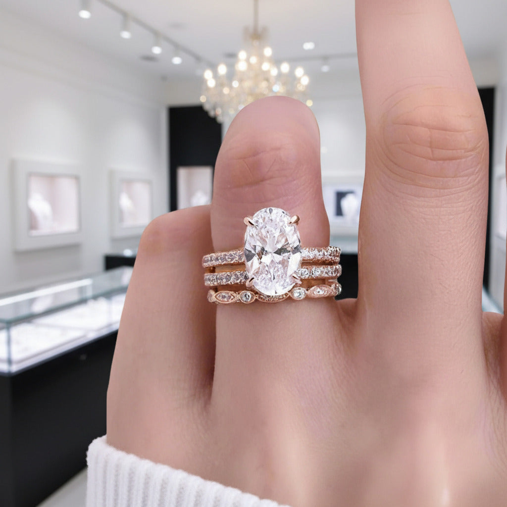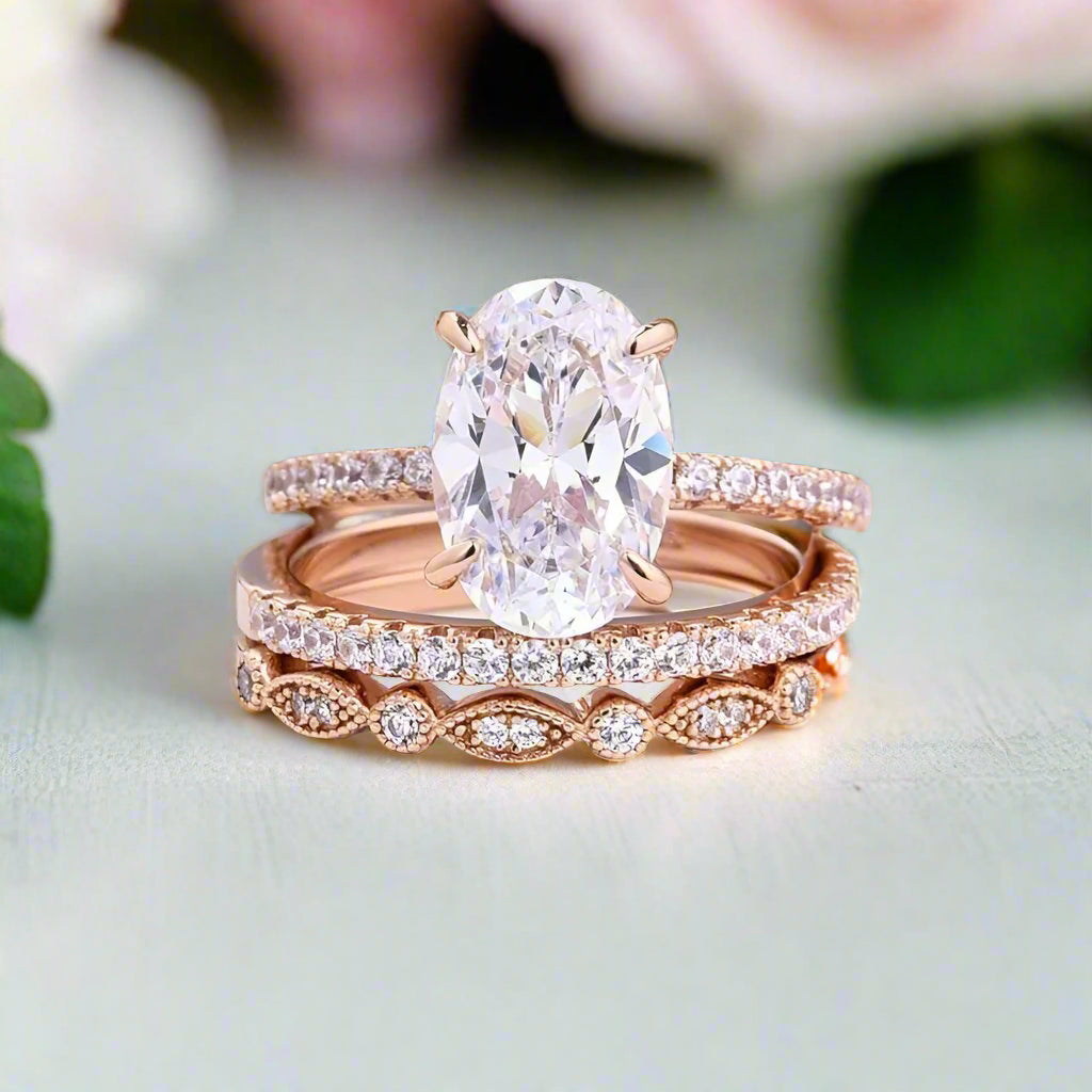 3.5 carat Oval Cut 3-Pieces Rose Gold Wedding Ring Set