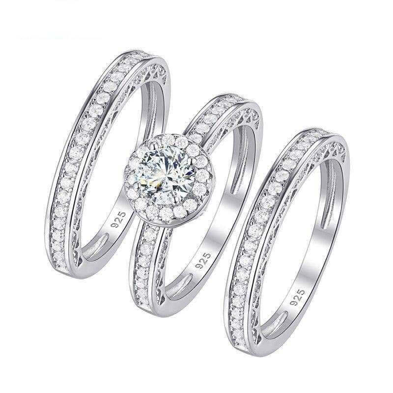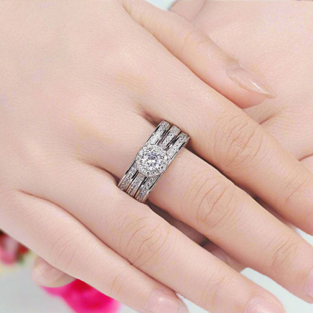 3Pcs 2.4 Ct Round Diamond Halo Engagement Ring Set