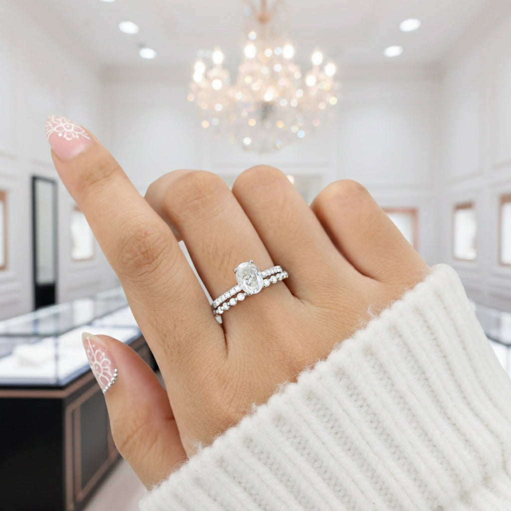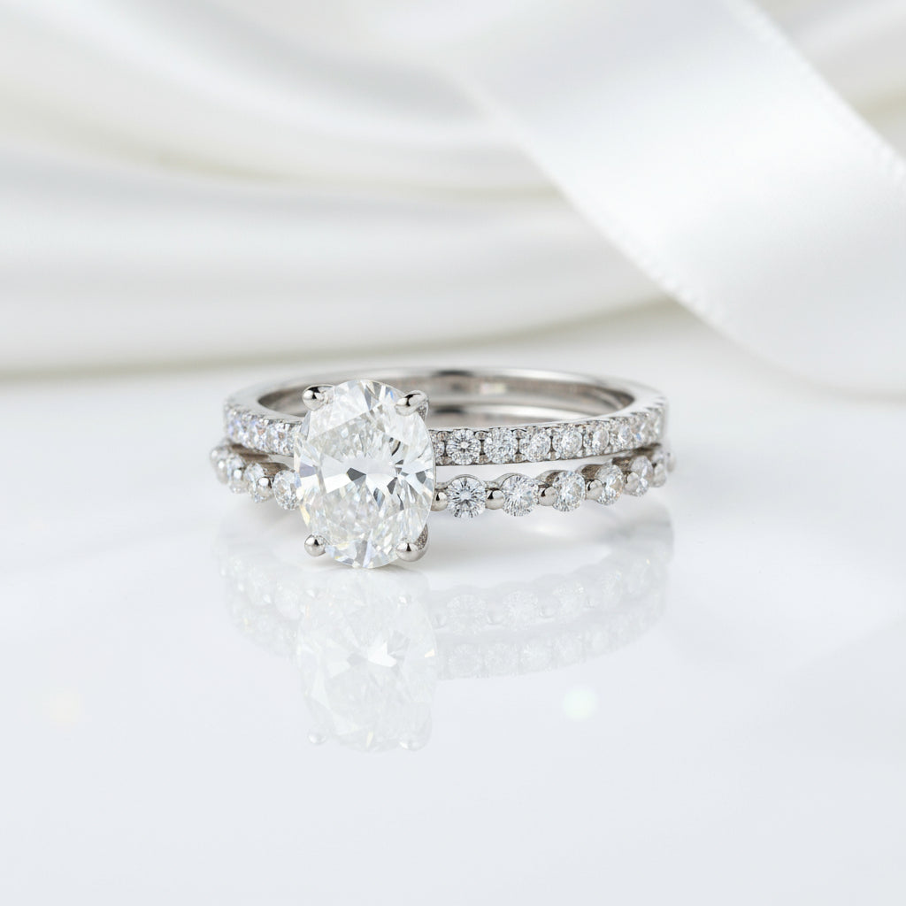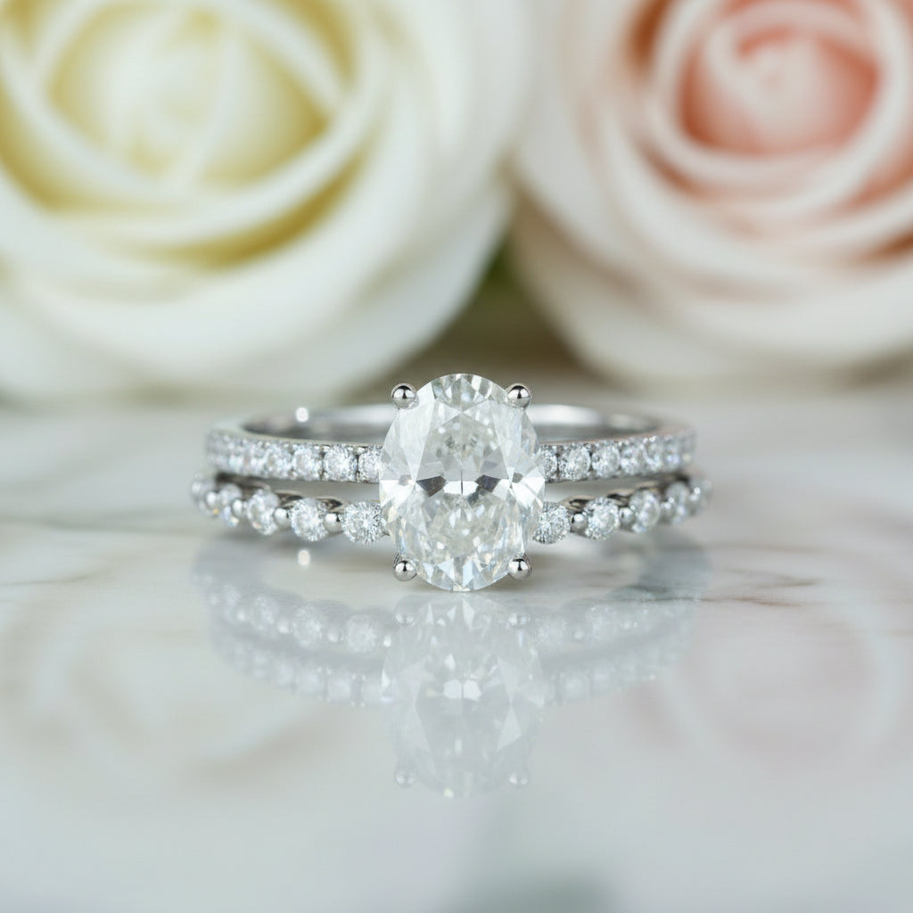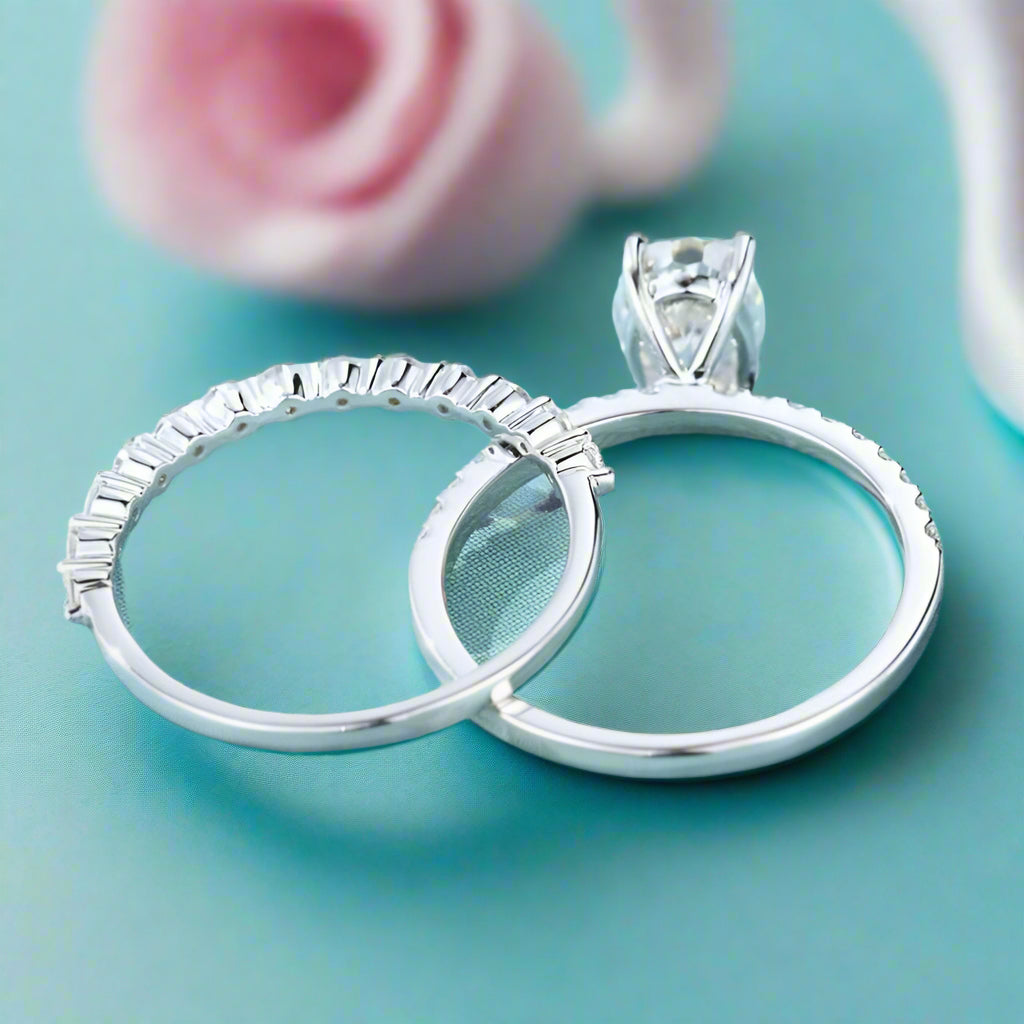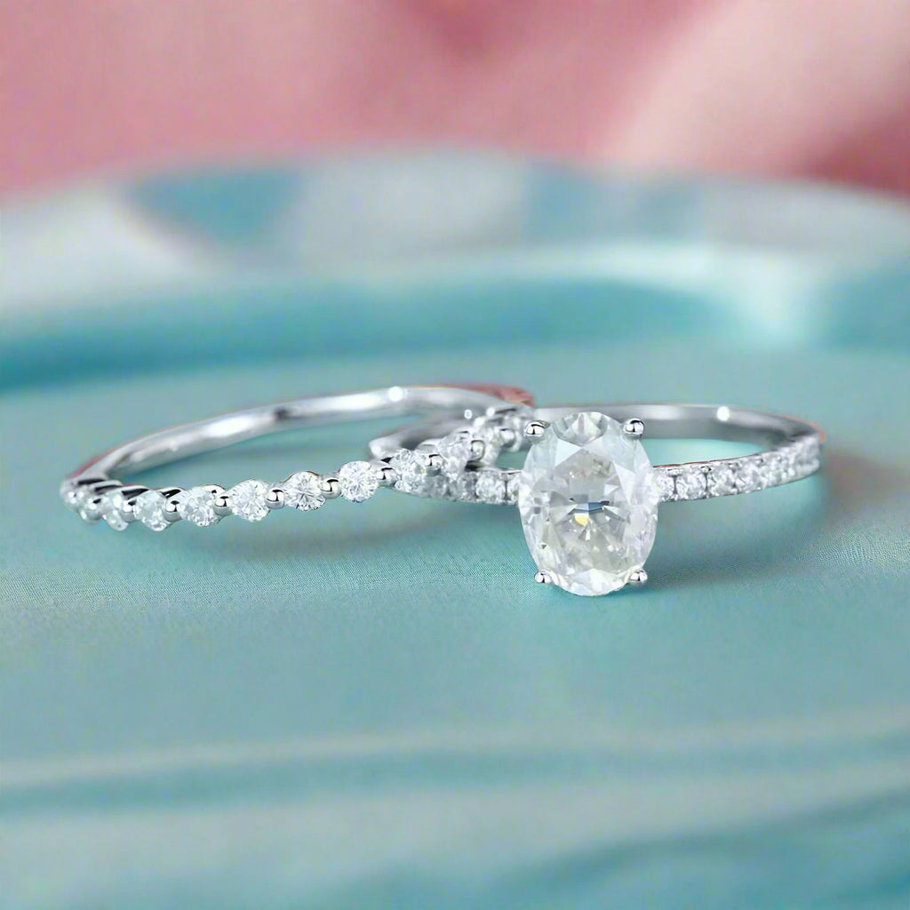 9k White Gold Oval Cut Diamond Half Eternity Wedding Ring Set