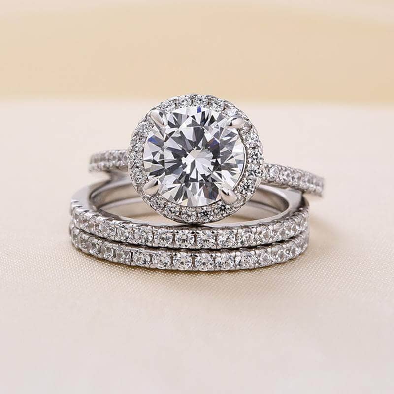 Classic Round Cut Halo 3-Pieces Wedding Set