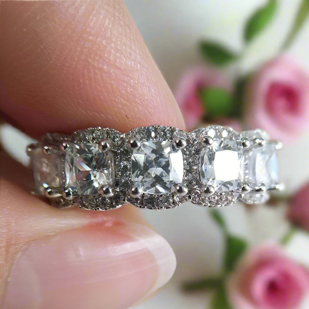 Eternity Halo Cushion Cut Ring Set in White Gold