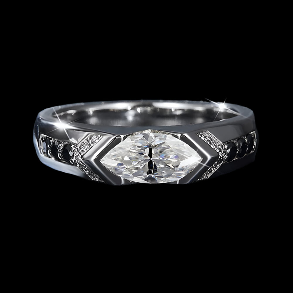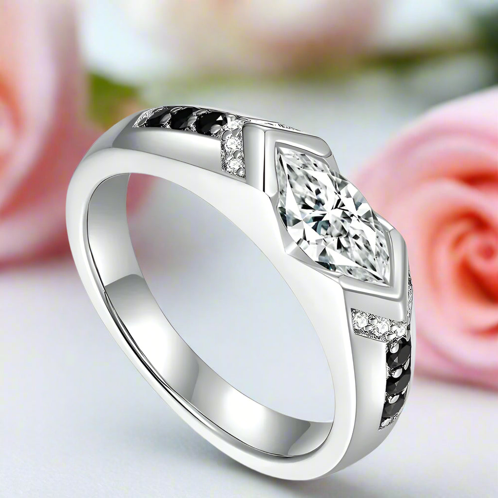 Your search for the perfect wedding band ends here with our 1.26 Ctw Marquise Cut Certified Moissanite Wedding Band from Black Diamonds New York. This enthralling piece features a breathtaking marquise cut moissanite stone set in 925 silver dipped 5x in 18k white gold. The stunning design of this ring is sure to captivate all who see it, making it a high quality and affordable choice for your special day.