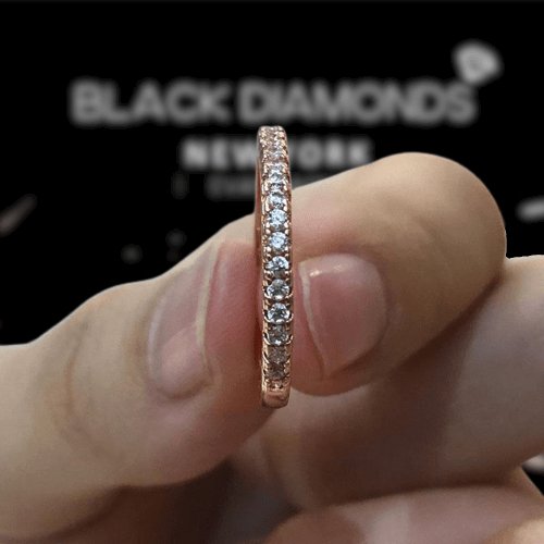 This stunning rose gold half eternity band features expertly hand-set diamonds that catch the light with every movement. Whether you're marking an engagement, anniversary, or simply want to treat yourself, this versatile piece works beautifully as a wedding band, promise ring, or meaningful gift for the moments that matter most.