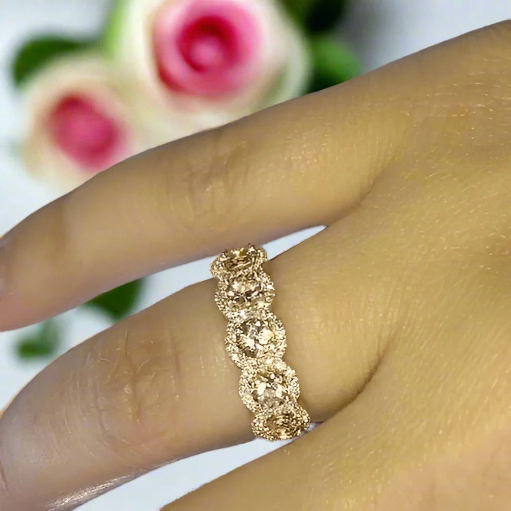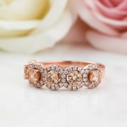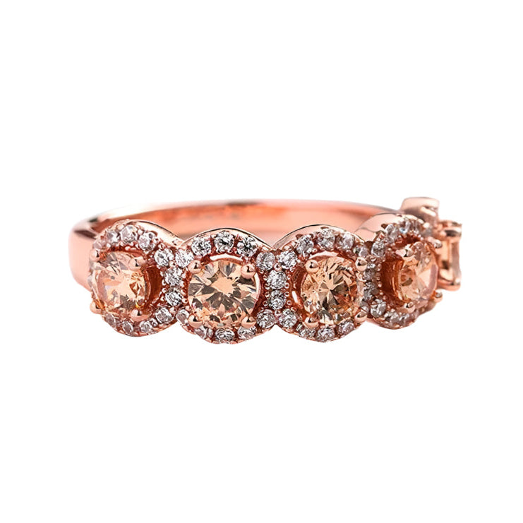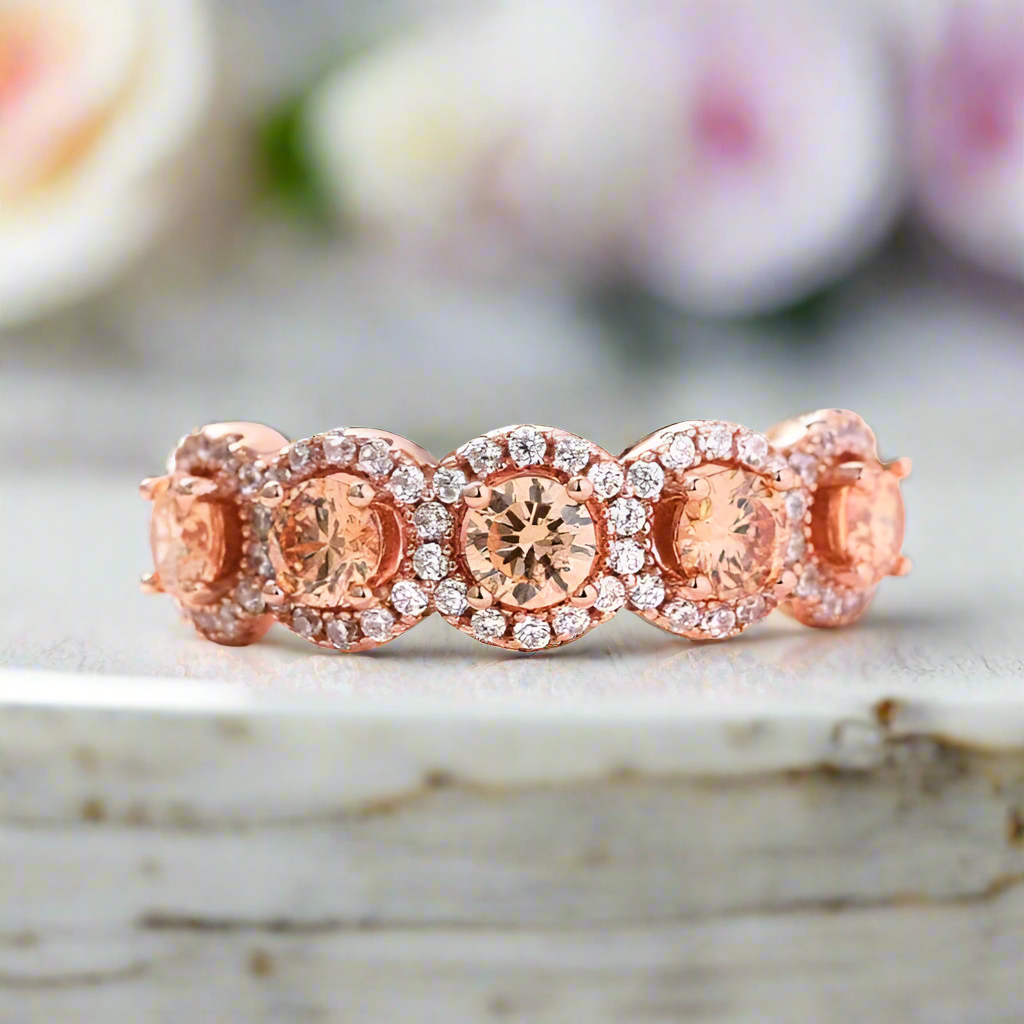 Rose Gold Halo Five Stone Champagne Stone Ring