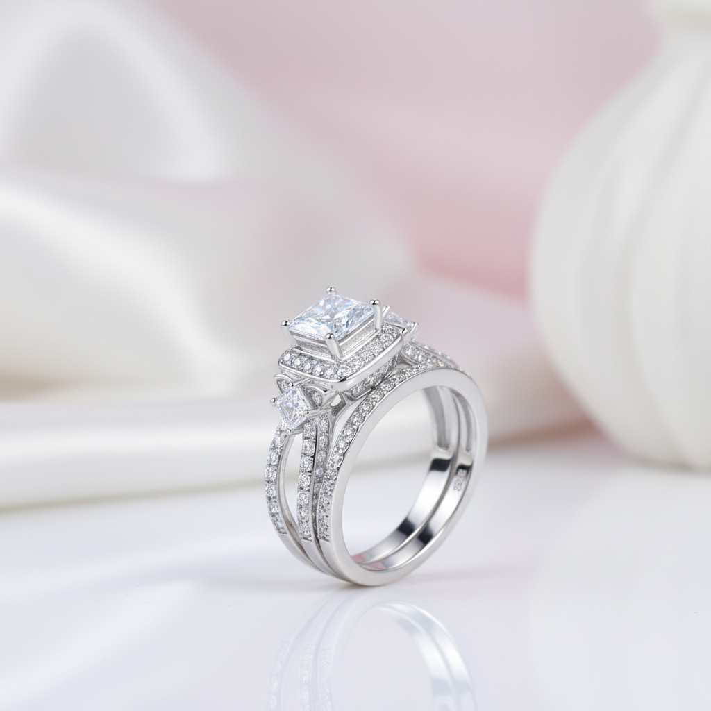 1.0 Ct Princess Cut Diamond Option Split Shank Engagement Ring Set