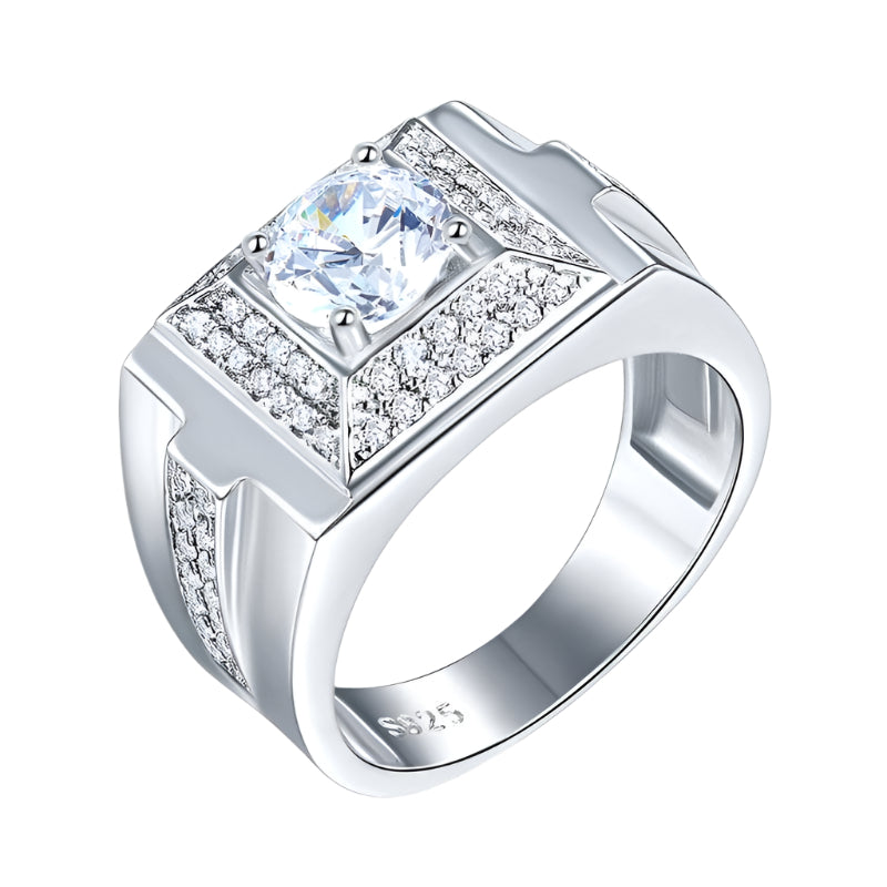 A stunning 1.0 carat round diamond men's wedding ring crafted from solid 925 sterling silver. Features a lab-created diamond that sparkles brilliantly while offering exceptional value. Timeless design built to last, perfect for celebrating your commitment.
