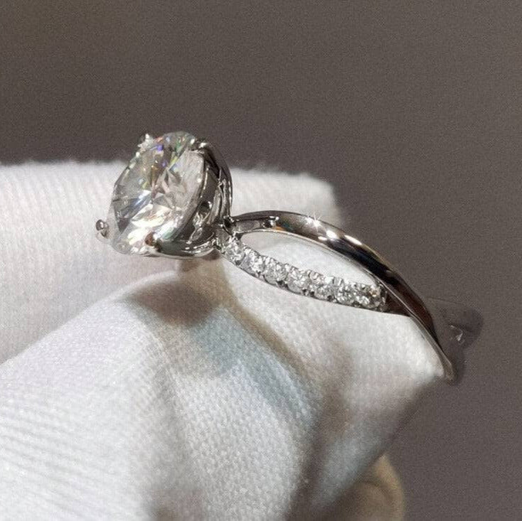 1 Carat Round Cut Diamond Twist 4 Claws Engagement Ring