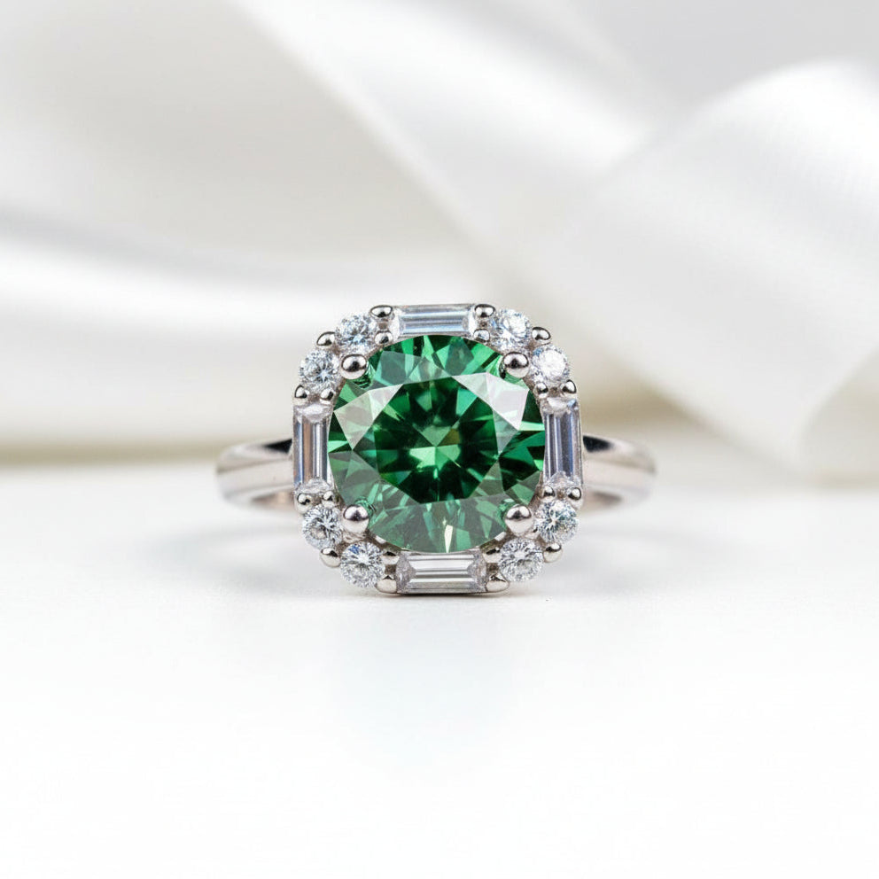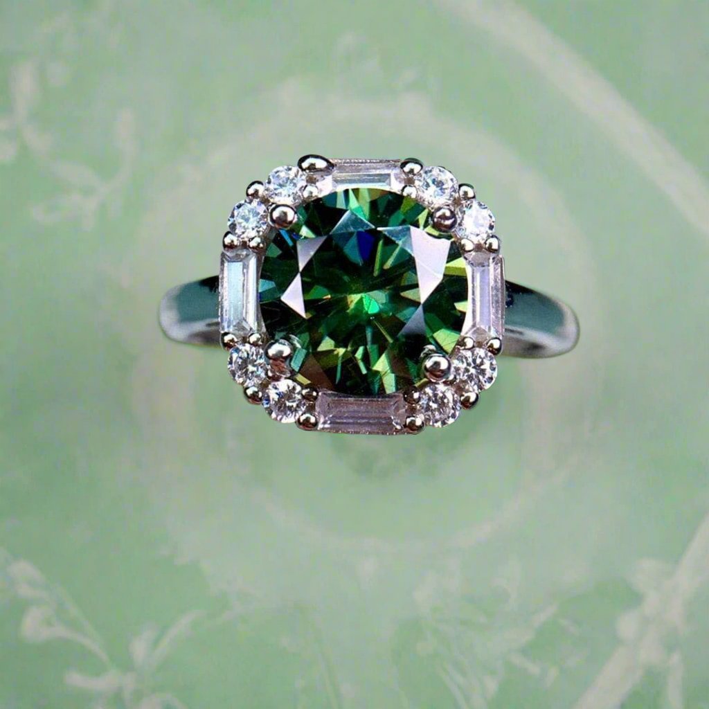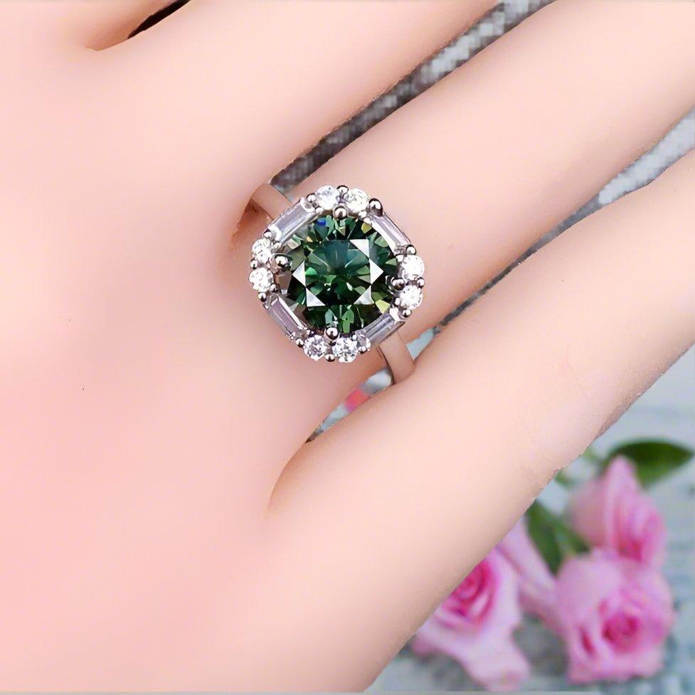 1 Carat Round Green Diamond Engagement Ring