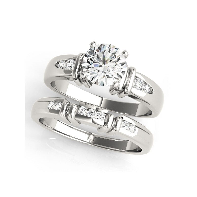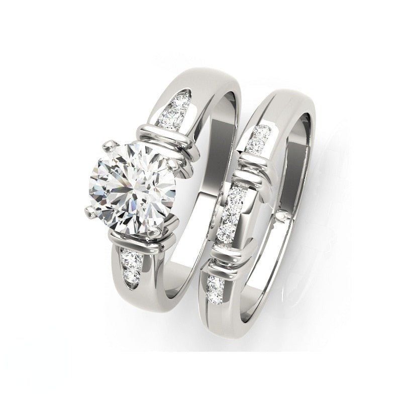 1 ct Round Cut Certified Diamond White Gold Engagement Set