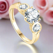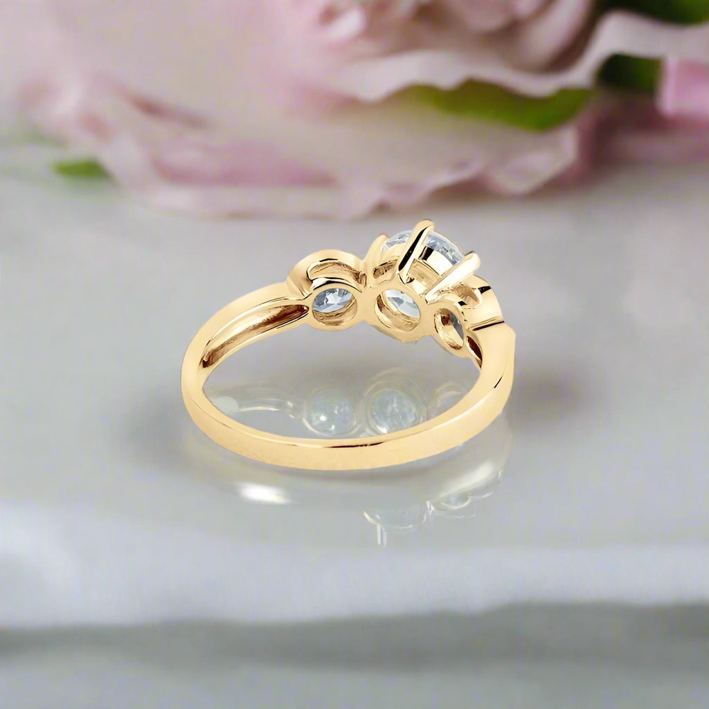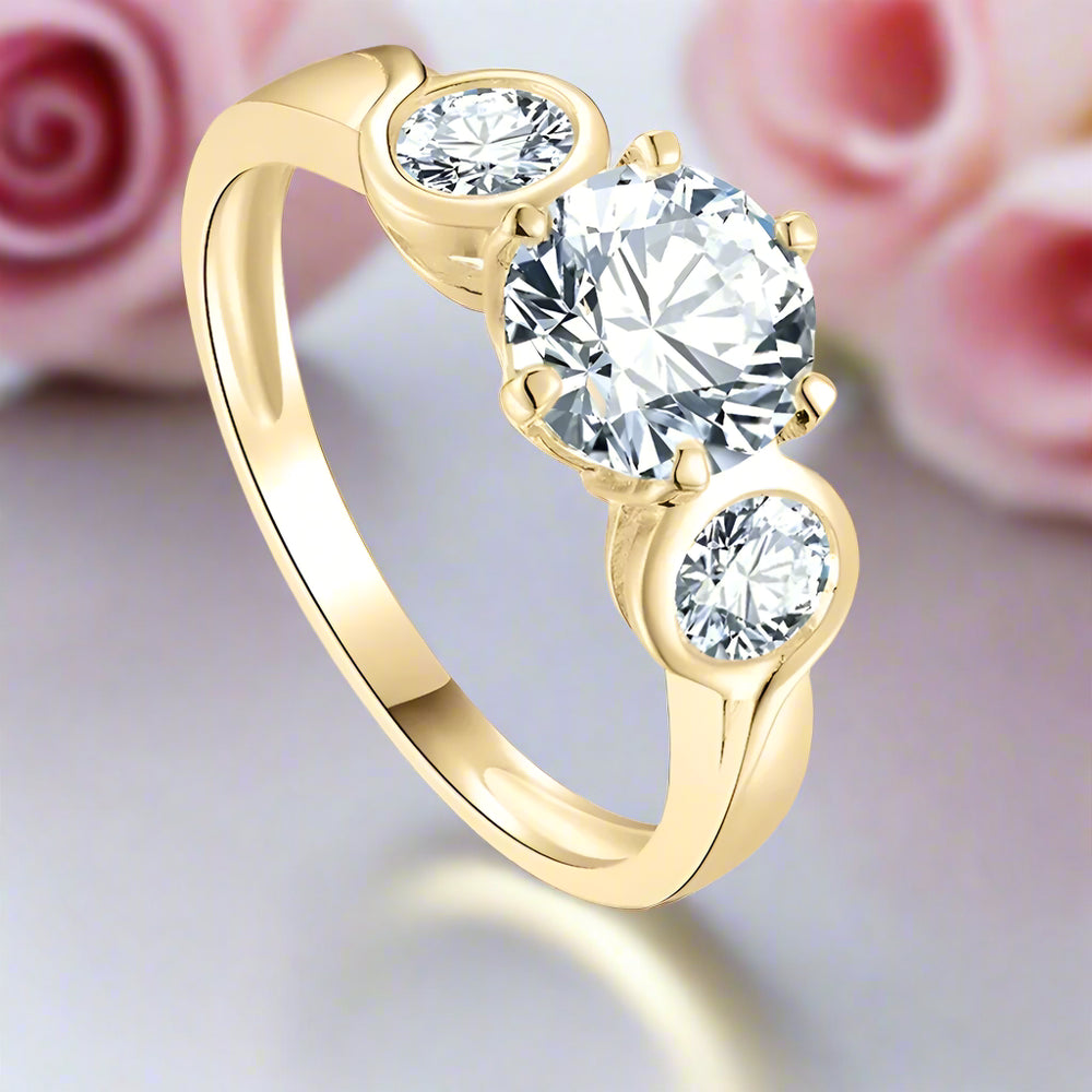10k Solid Gold Three Stone Round Diamond Engagement Ring