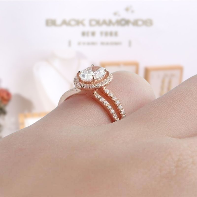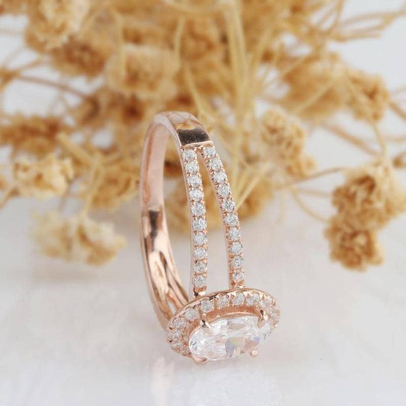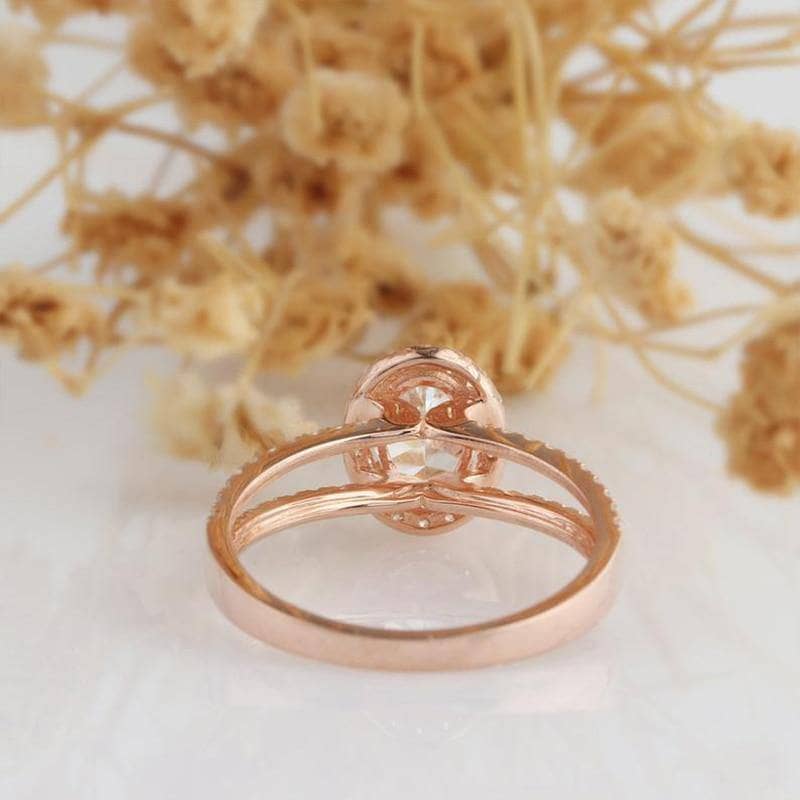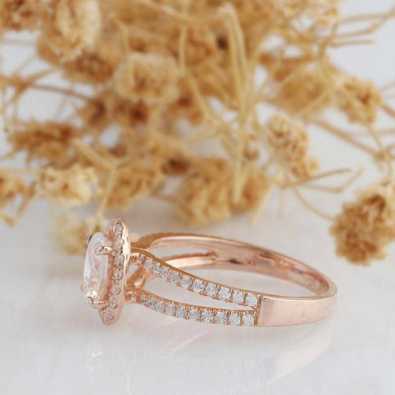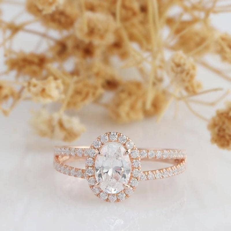 14k Rose 1ct Oval Cut Diamond Halo Engagement Ring