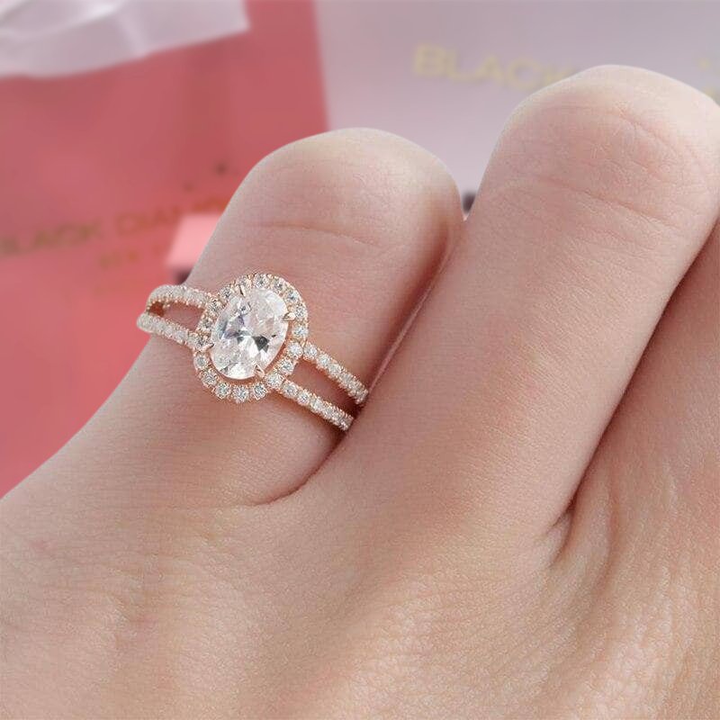 This 14k Rose Gold 1ct Oval Cut Certified Moissanite Halo Engagement Ring is ideal for creating a memorable moment for your special someone. Its beautiful design, exceptional quality and inexpensive price tag make it an ideal choice for any budget. Enjoy its radiant brilliance for years!