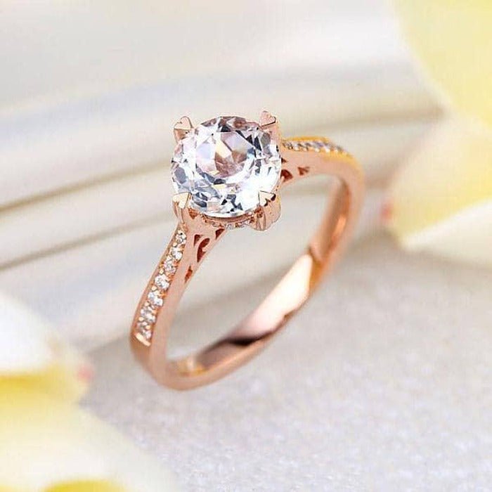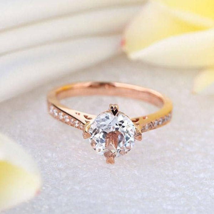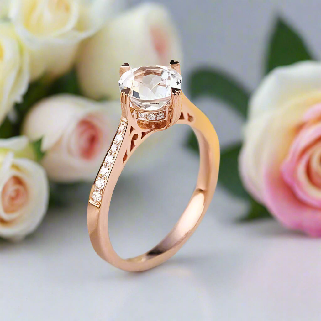 14k Rose Gold 1.2 Ct Topaz & Natural Diamond Engagement Ring
