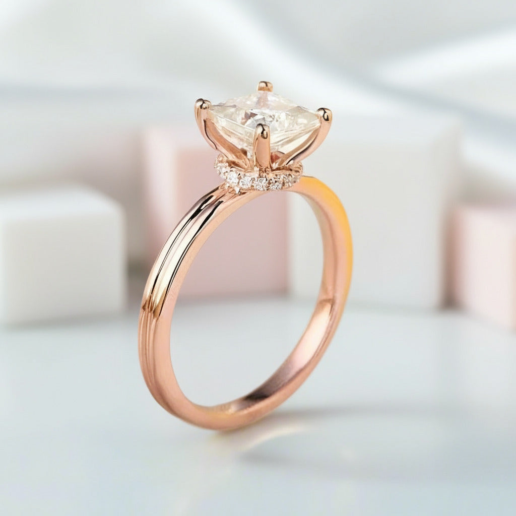 14k Rose Gold 1ct Princess Cut Diamond