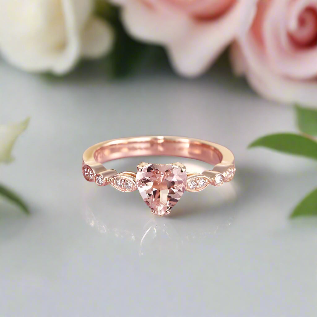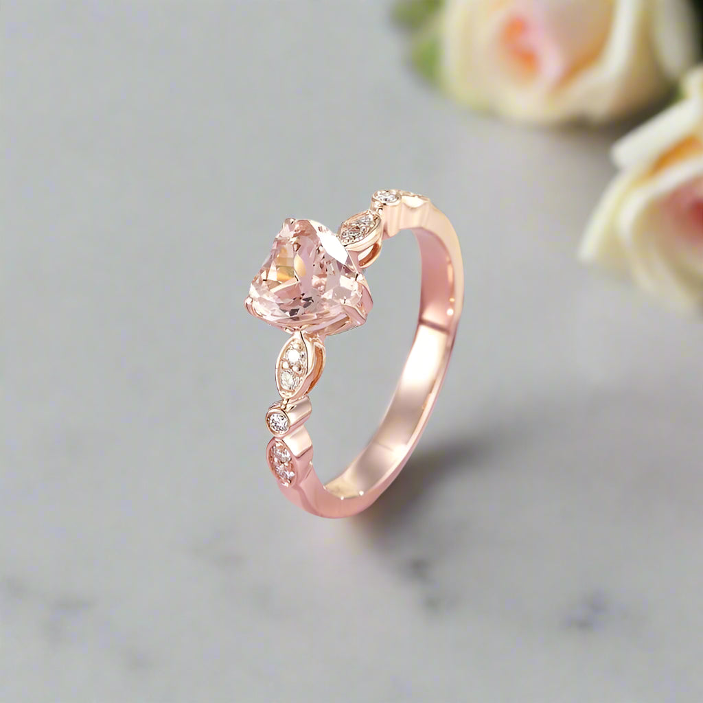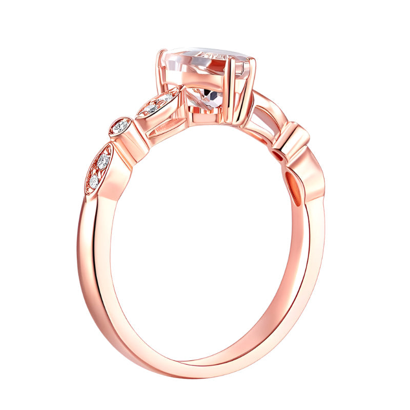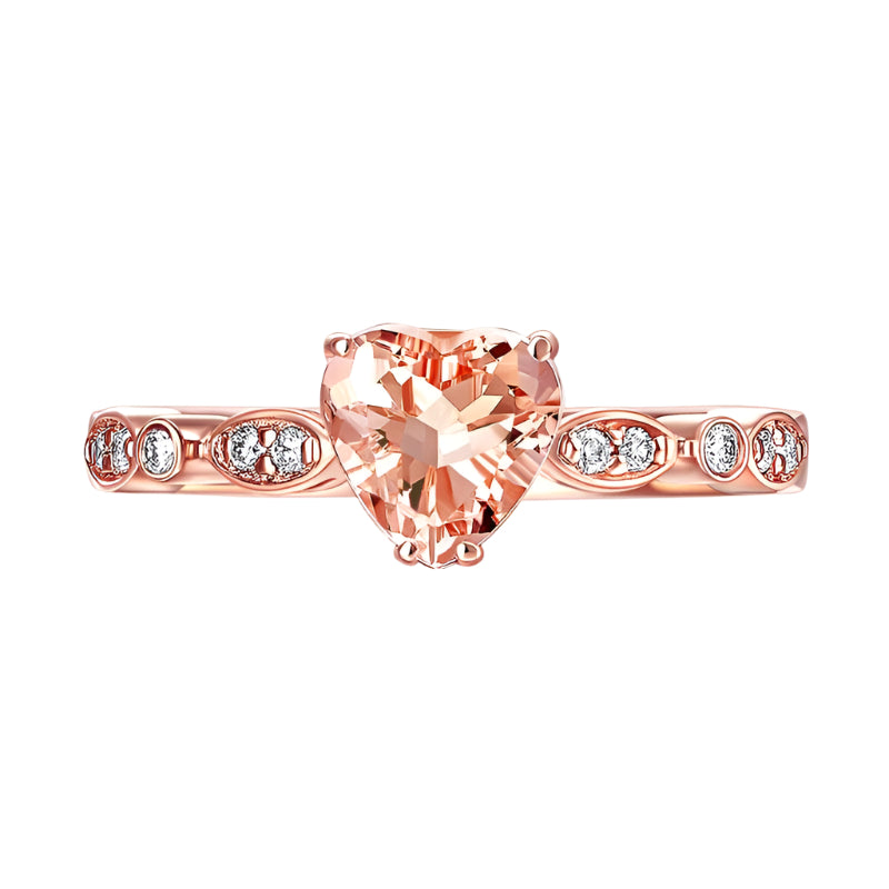 14k Rose Gold 7mm Heart Peach Morganite 0.1 Ct Natural Diamond Ring