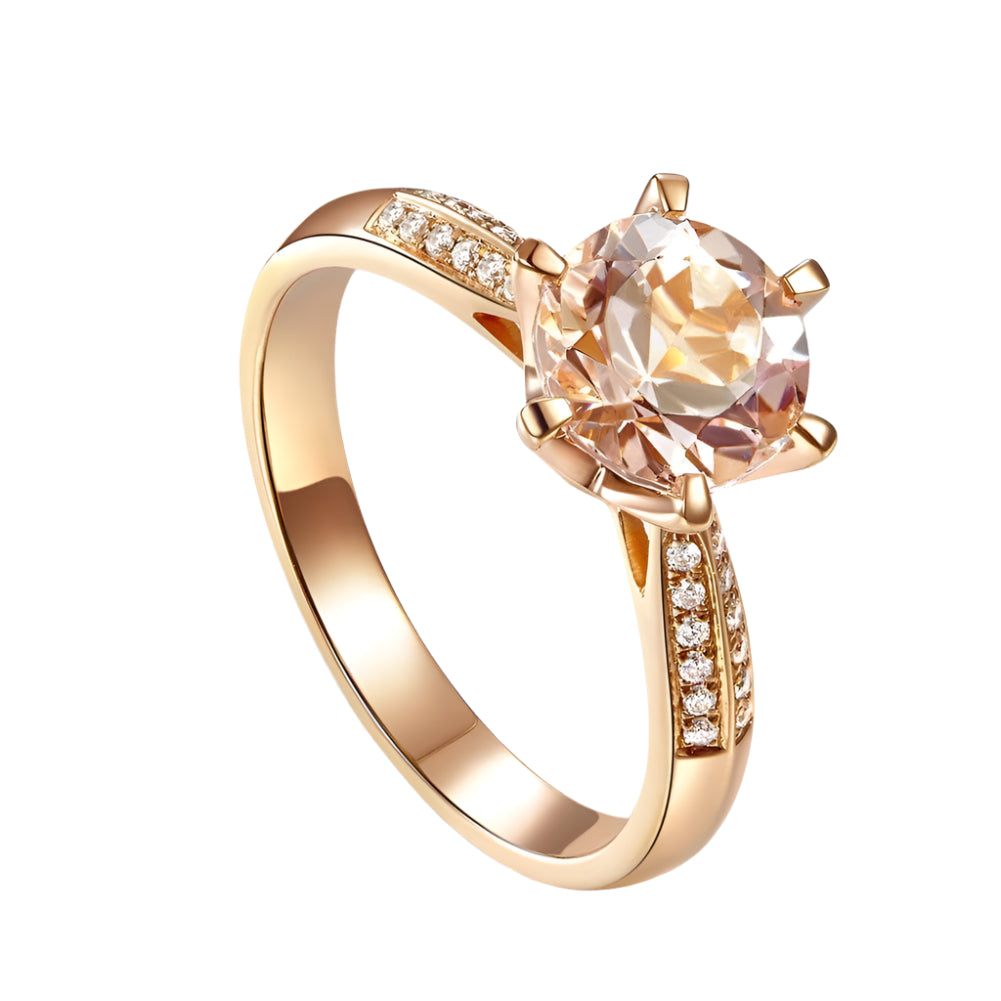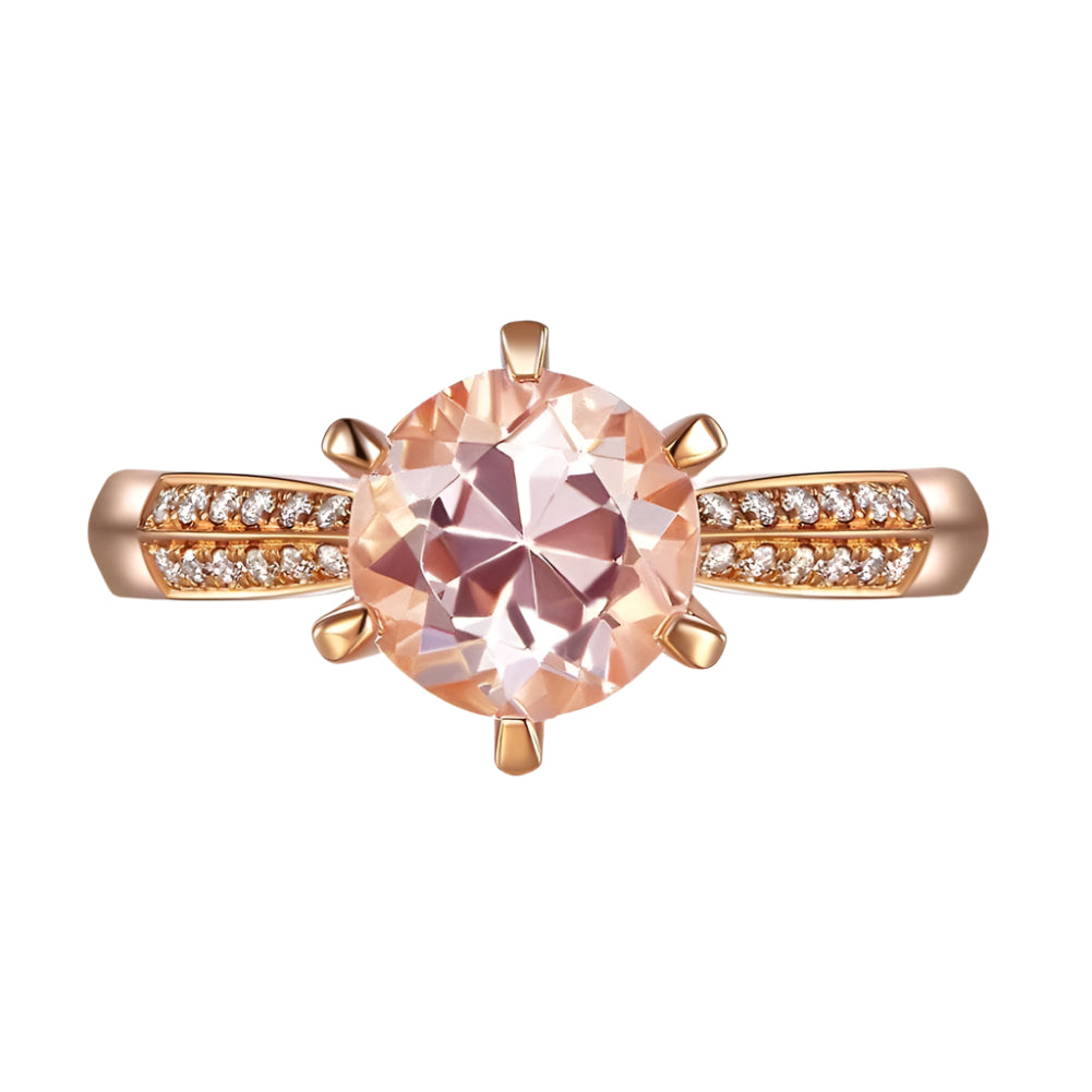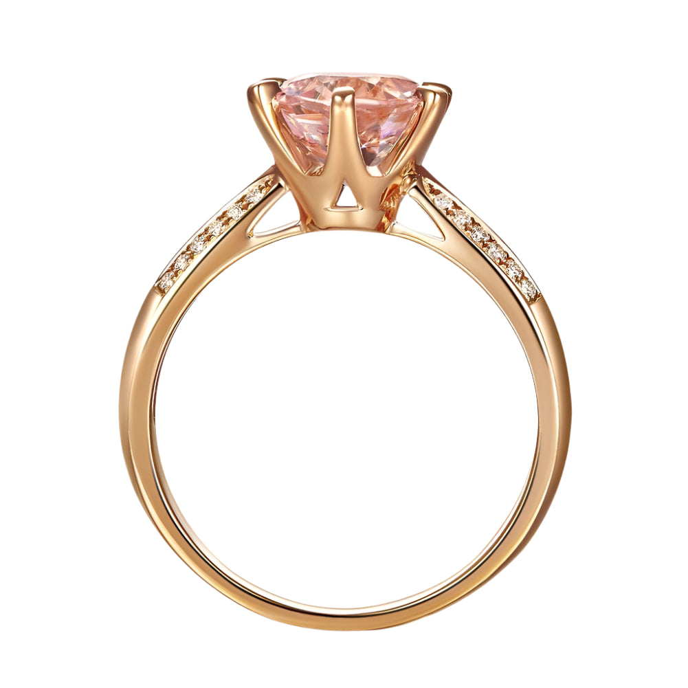 Witness the beauty and elegance of a 14k rose gold engagement peach morganite natural diamond ring that will forever commemorate your special union! The impressive 1.2ct, round cut diamond of VS1 clarity refracts the light, radiating its brilliant shine to indicate a never-ending love. Expertly crafted with the finest details, this ring is an affordable yet eye-catching choice.