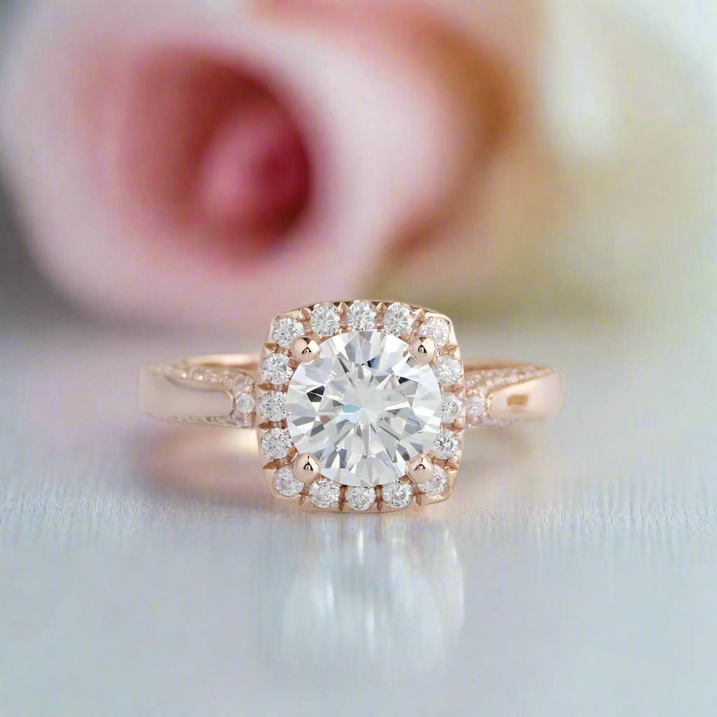 14k Rose Gold Halo 1.2ct Diamond Engagement Ring