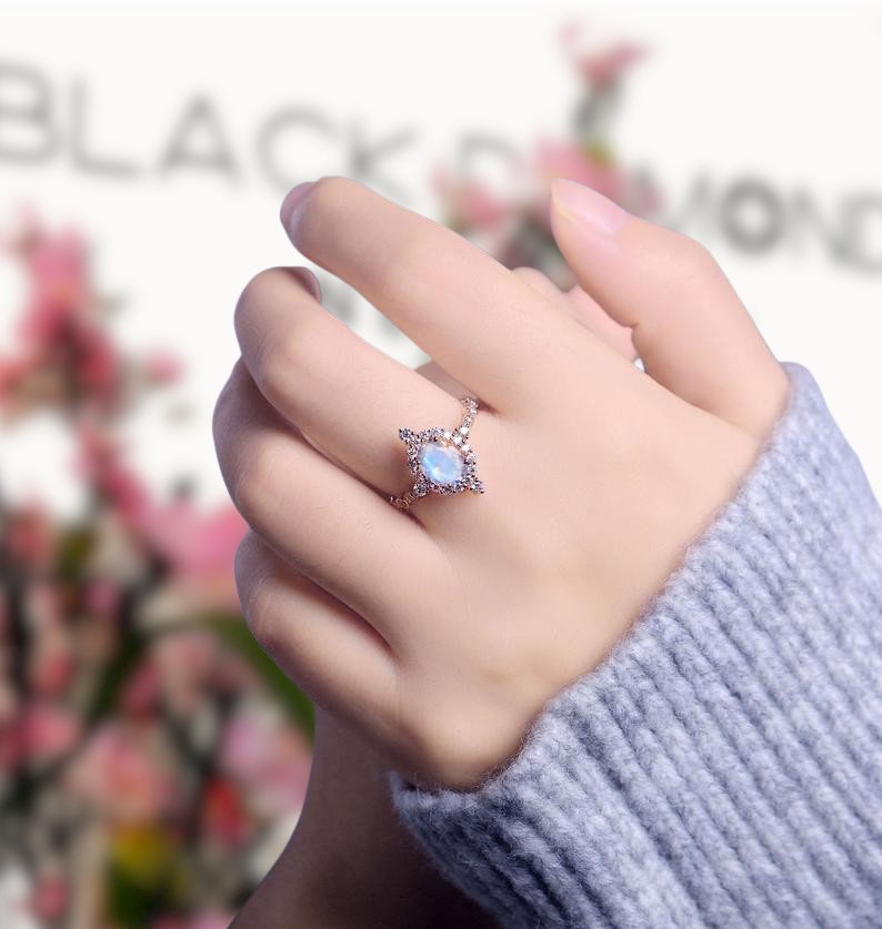 Make her day special with this Stunning 14k Rose Gold Moonstone and Certified Moissanite Halo Engagement Ring from Black Diamonds New York. This gorgeous and eye-catching ring features an oval cut Moonstone beautifully framed by a halo of Certified Moissanite stones for an elegant look. It's sure to become a treasured heirloom for generations to come. And with its high quality design and affordable price, you can rest assured this ring is worthy of the one you love.
