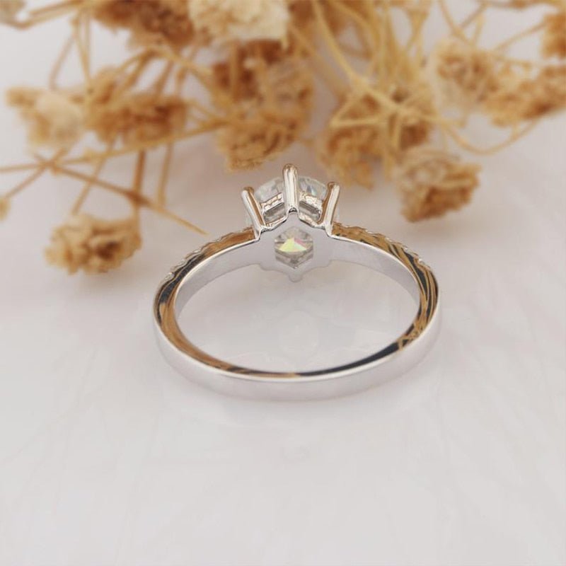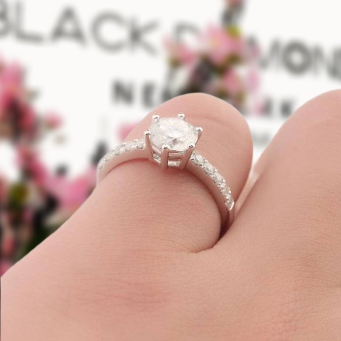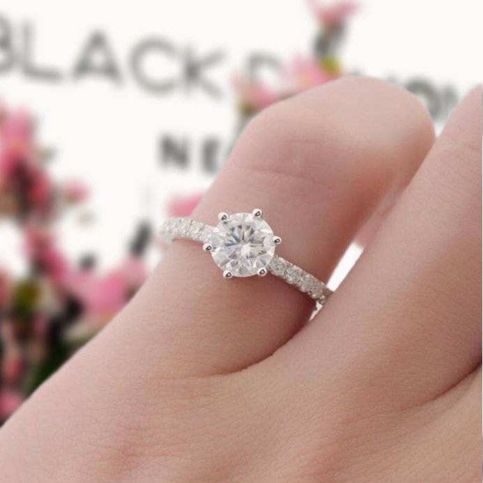 Show the one you love just how much you care with our 14k White Gold 1.0 Ct Round Cut Certified Moissanite Classic 6 Prong Engagement Ring by Black Diamonds New York. This ring is crafted with the highest quality materials and will make the moment special with its brilliant center stone and band stones. And you can have it all at an affordable price. So stunning and gorgeous!