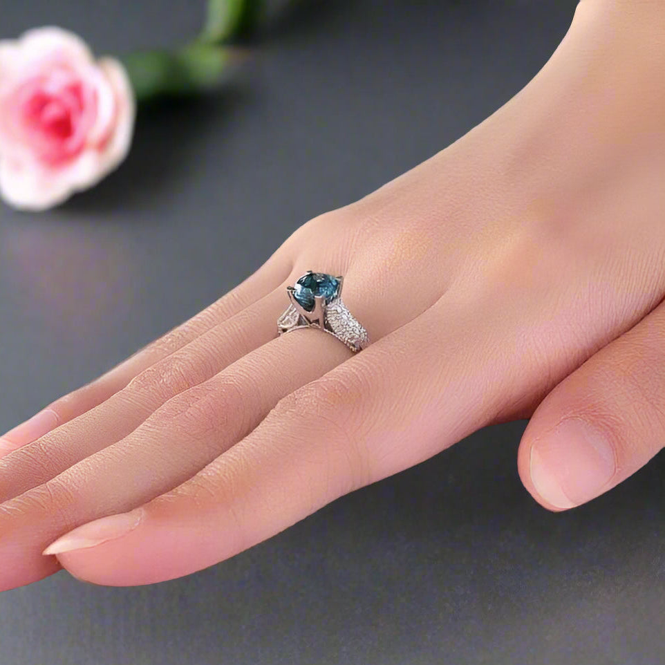 Stone Comparison: Falls between premium zirconium-based crystal and sapphire-grade simulants, with enhanced brilliance and clarity.