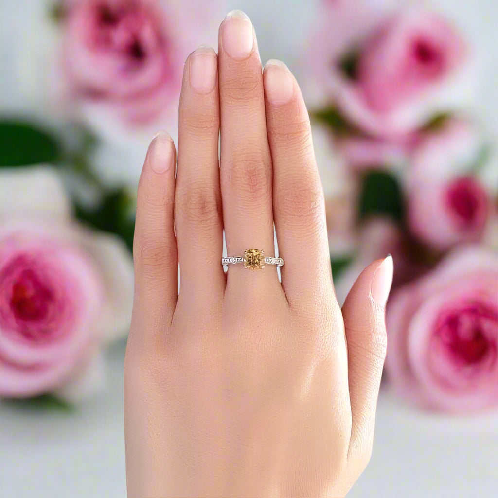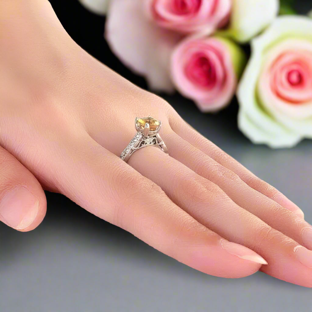 14k White Gold 1.2ct Citrine Natural Diamond Ring