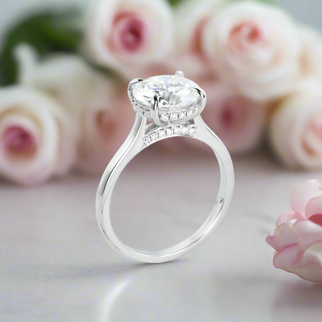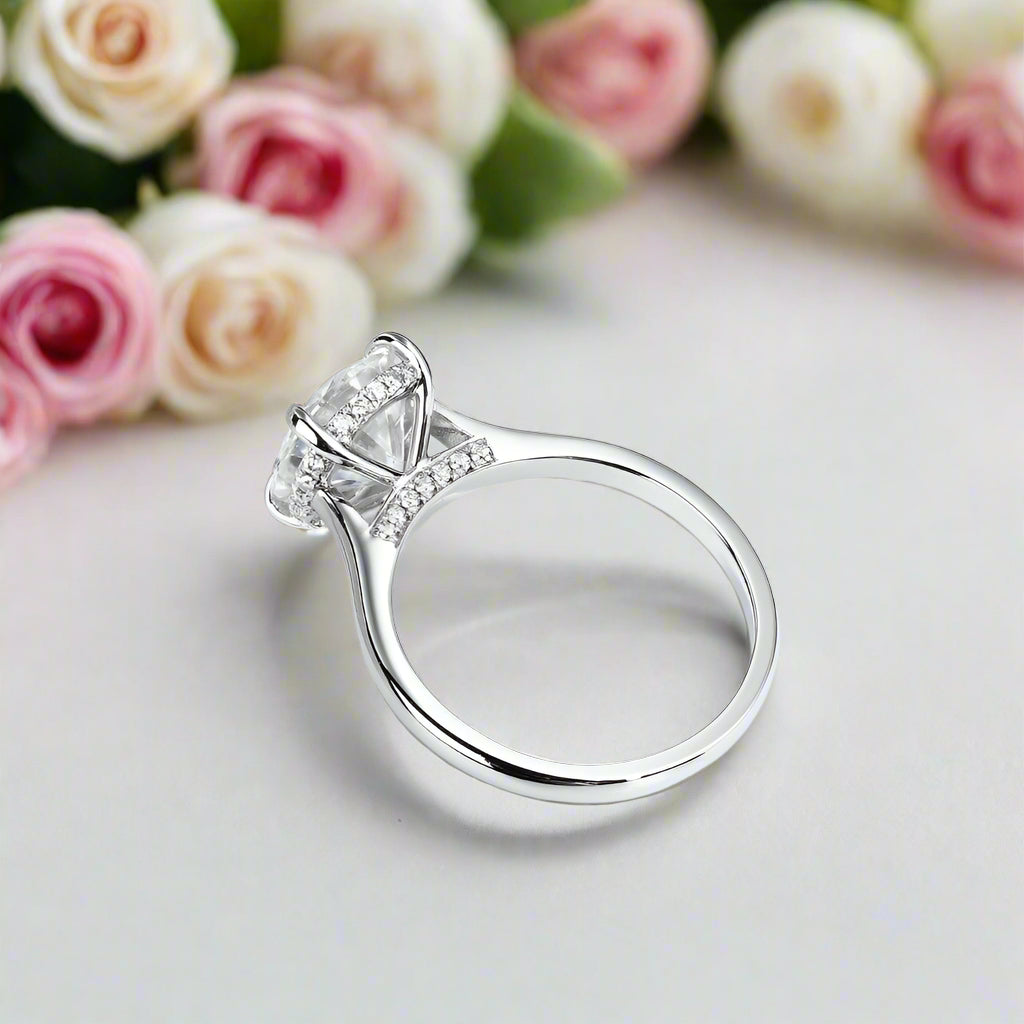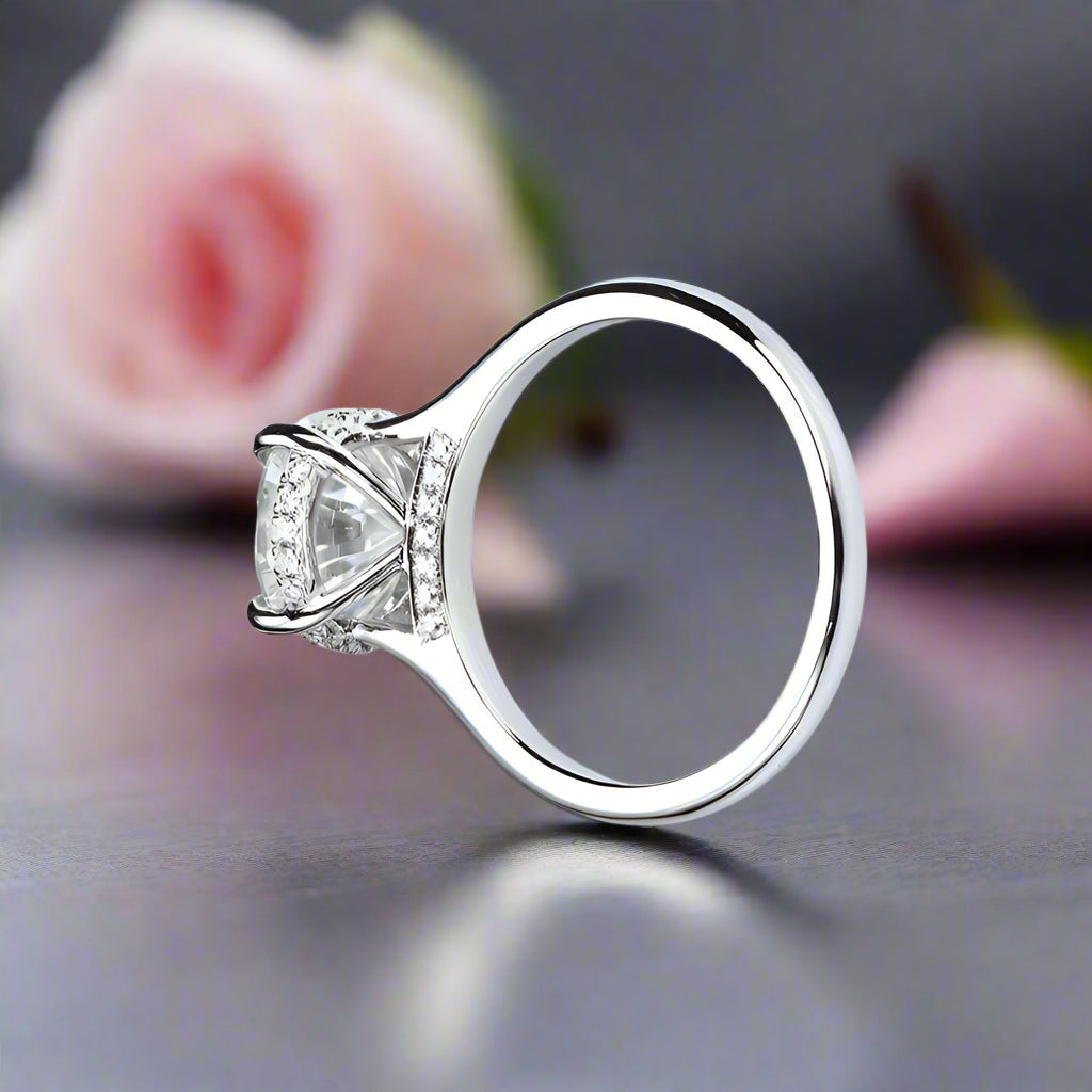 14k White Gold 2ct 8mm Certified Moissanite Hidden Halo Engagement Ring