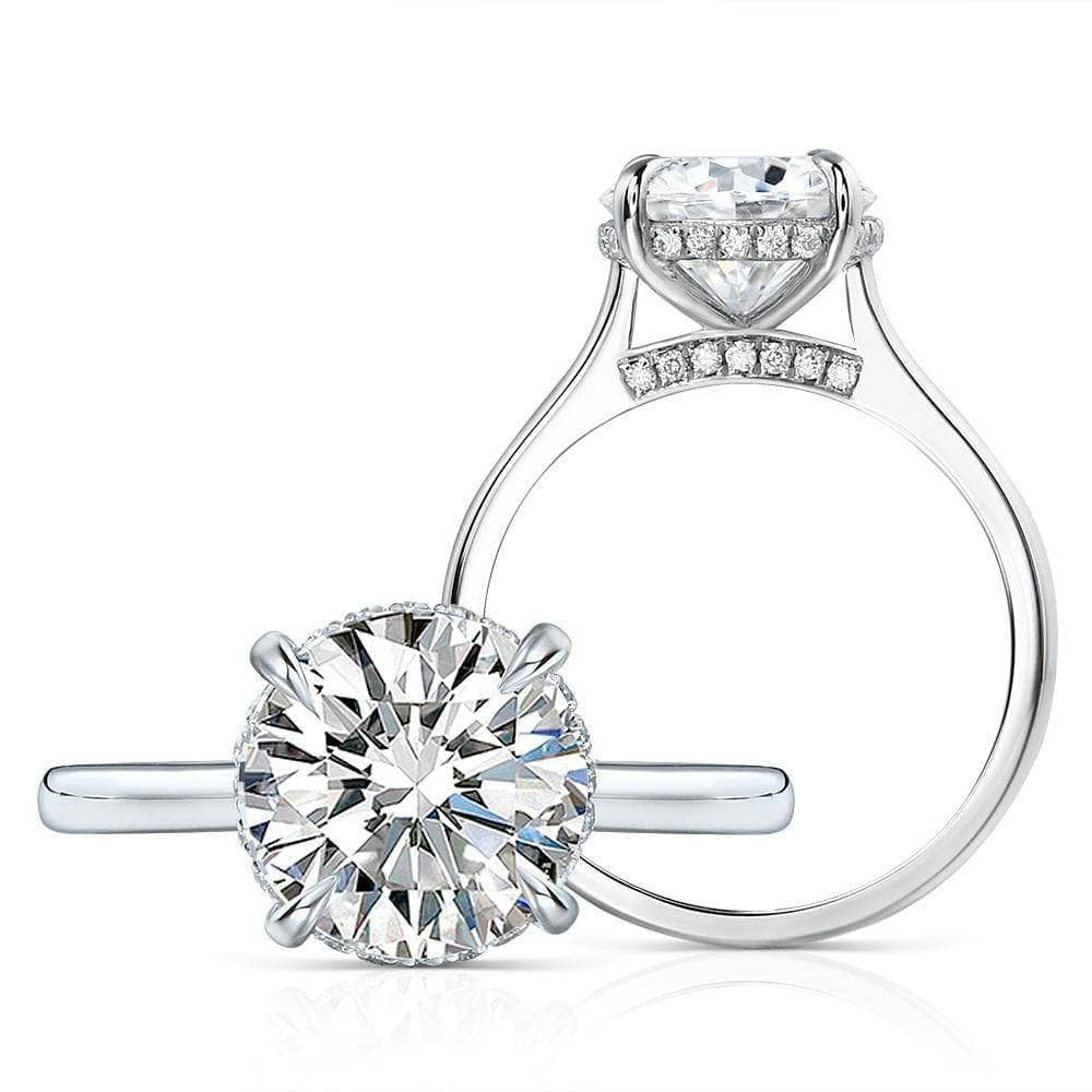 14k White Gold 2ct 8mm Diamond Hidden Halo Engagement Ring