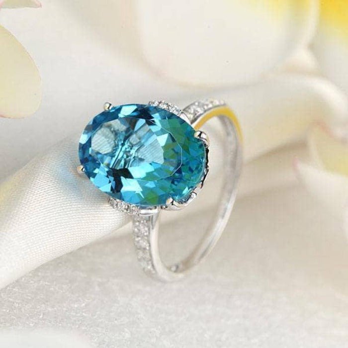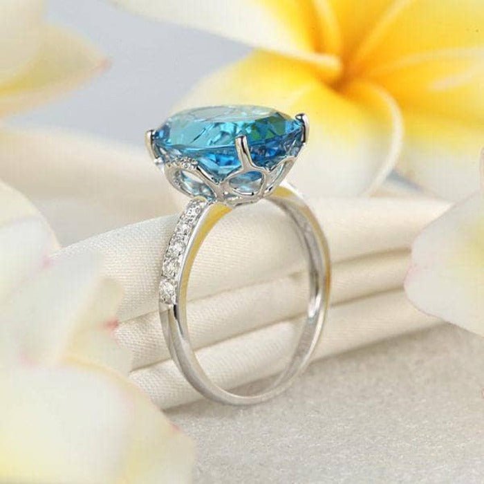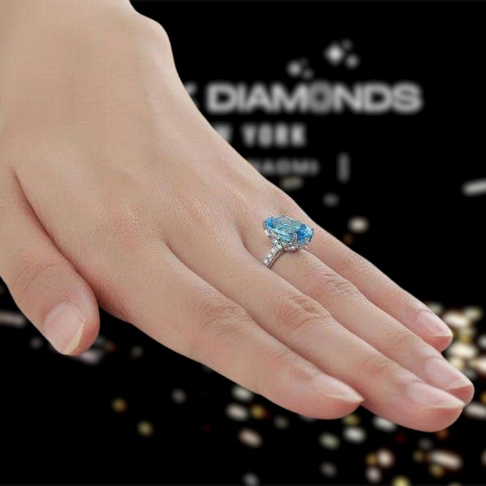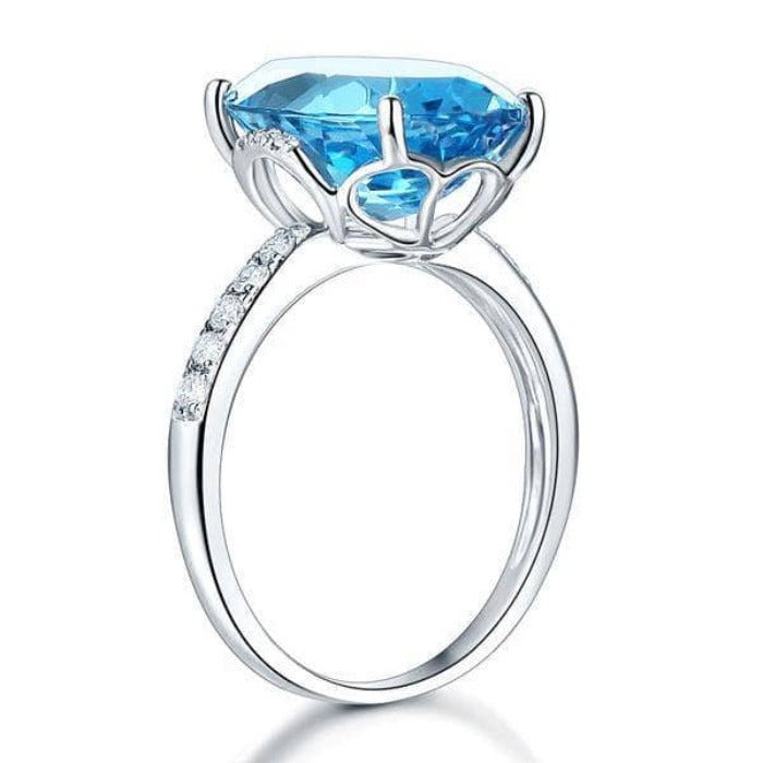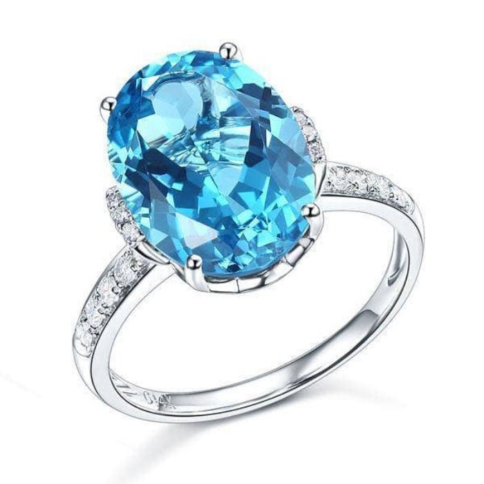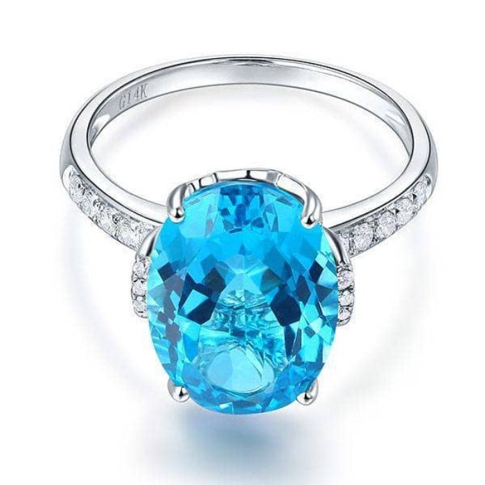 This stunning 14K White Gold 6.5Ct Oval Swiss Blue Topaz 0.22ct Natural Diamond is a gorgeous piece for your every day wear. The side stones of sparkly diamonds enhance its beauty and make it look even more attractive. Enjoy this high quality and affordable piece with its unique sparkly design - no matter the occasion, it will be sure to make an impression!