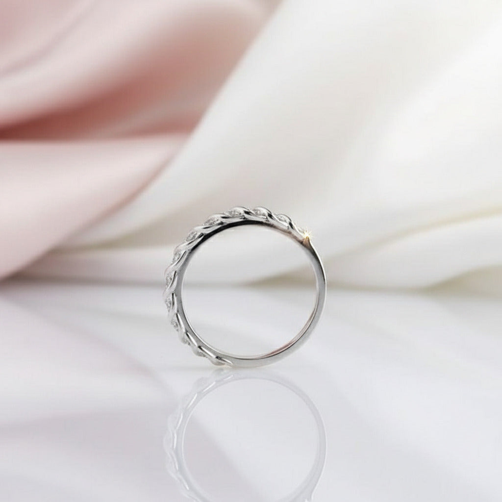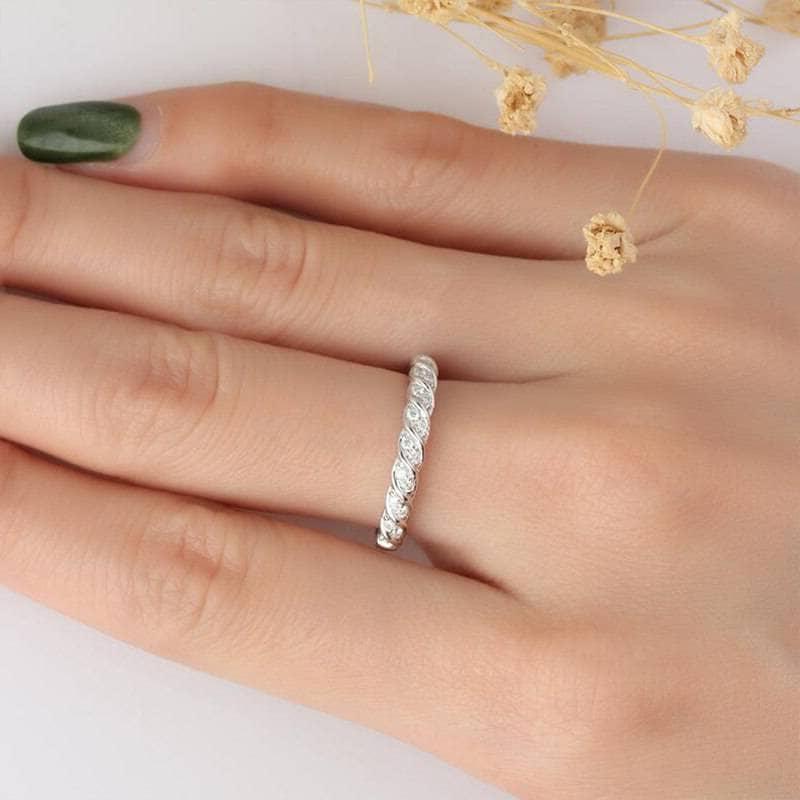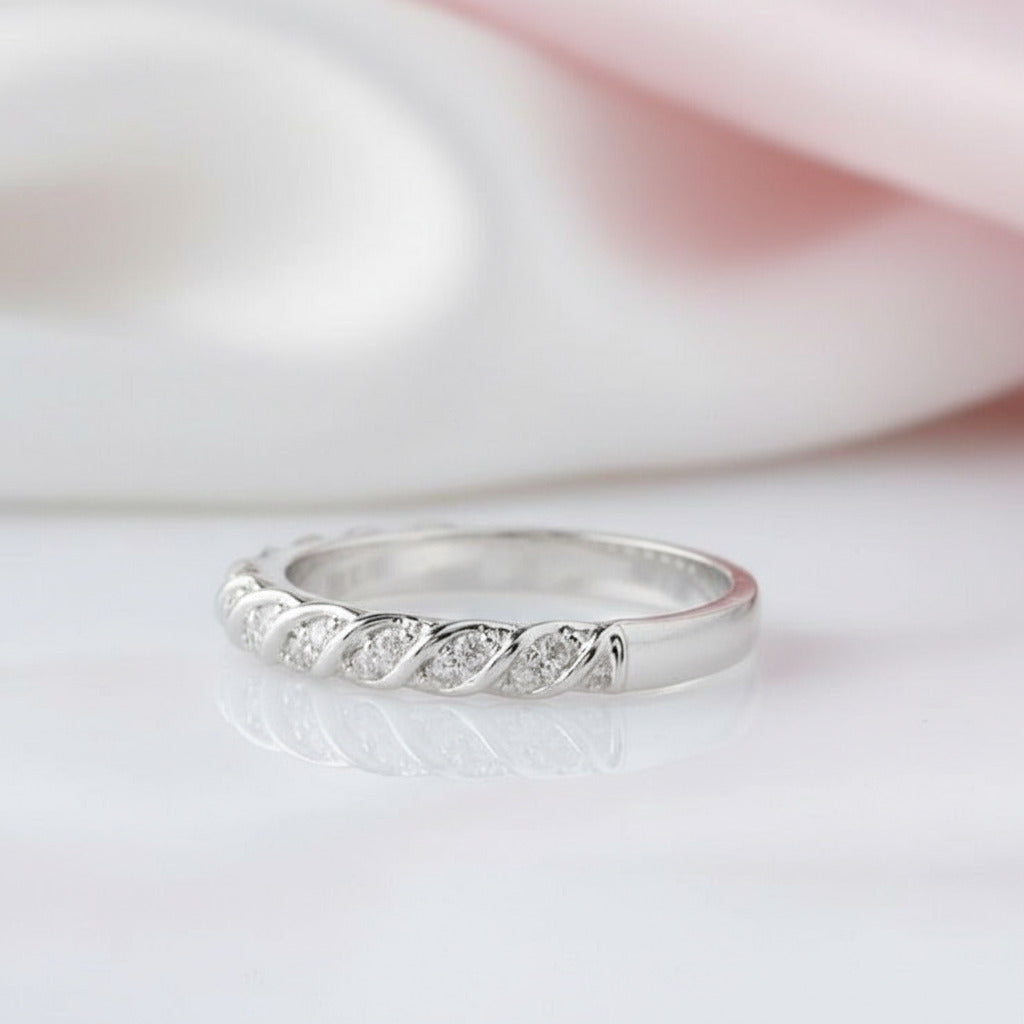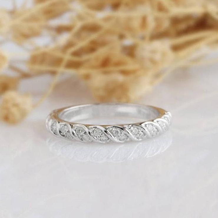14k White Gold Diamond Stack Half Eternity Wedding Band
